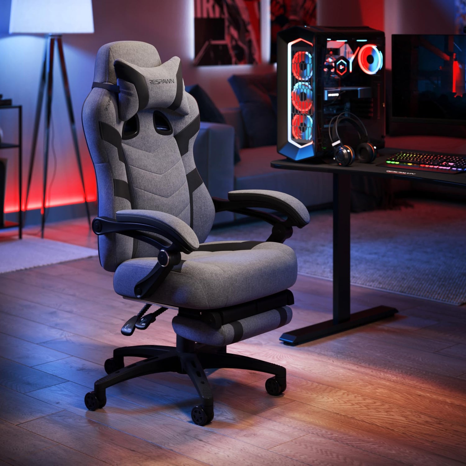 RESPAWN 110 Pro Gaming Chair - Gaming Chair with Footrest, Reclining Gaming Chair, Video Gaming Computer Desk Chair, Adjustable Desk Chair, Gaming Chairs for Adults with Headrest Pillow - Grey Fabric