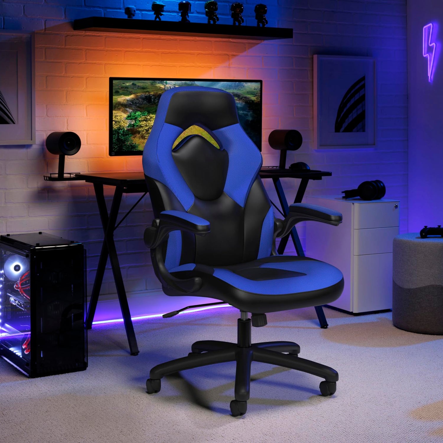 - Ergonomic Swivel Chair: With contoured segmented padding, integrated padded headrest, and padded arms, this video game chair provides quality support and comfort for hours of play.