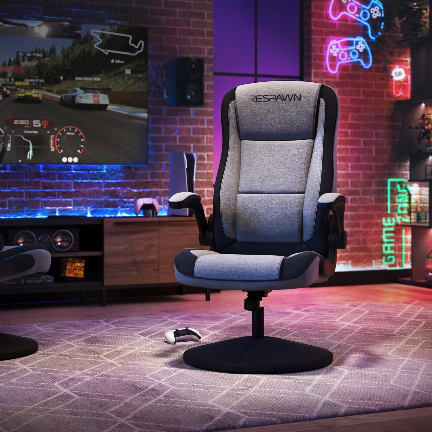 RESPAWN 800 Gaming Chair Floor, Swivel Rocker Gaming Chair, High Back Ergonomic Floor Gaming Chair for Kids and Adults, Gaming Recliner, Floor Rocker Chair with Armrests - Grey Fabric