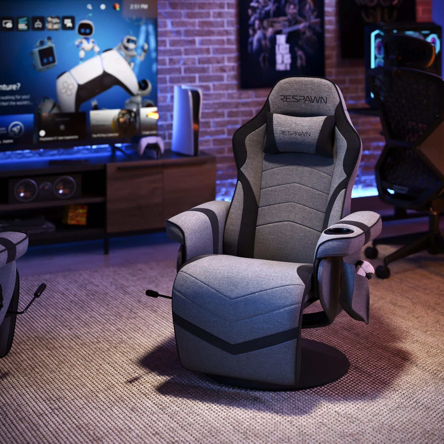 RESPAWN 900 Console Gaming Recliner with Footrest and Lumbar Support - Comfortable Ergonomic Gaming Chair with Headrest, No Wheels, Reclining, Heavy Duty, Racing Style Video Game Chairs - Gray Fabric