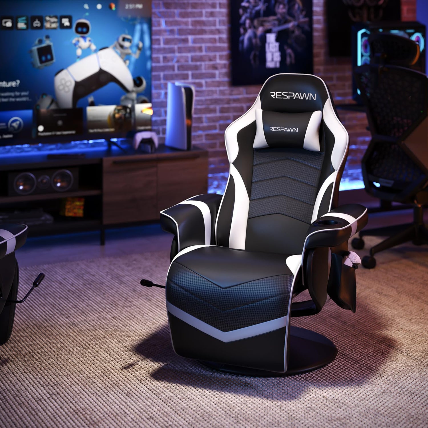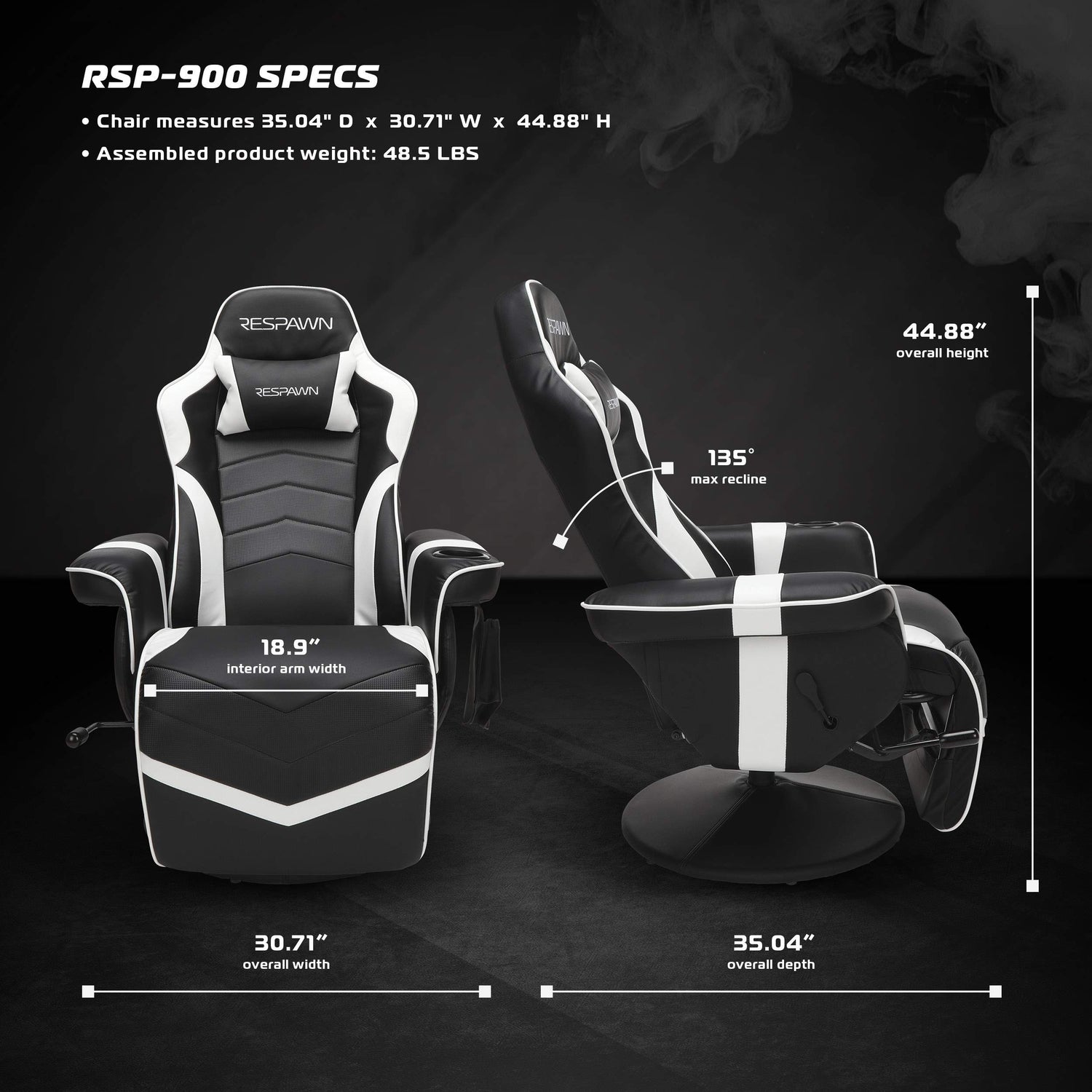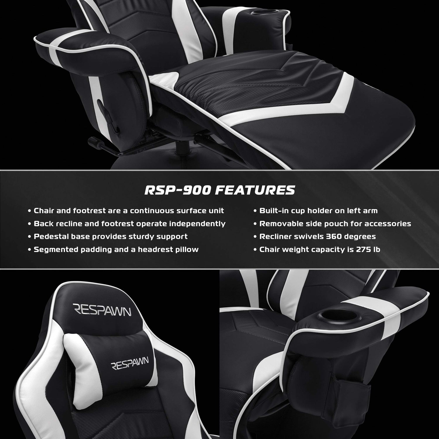 RESPAWN 900 Gaming Recliner - Video Games Console Recliner Chair, Computer Recliner, Adjustable Leg Rest and Recline, Recliner with Cupholder, Reclining Gaming Chair with Footrest - White