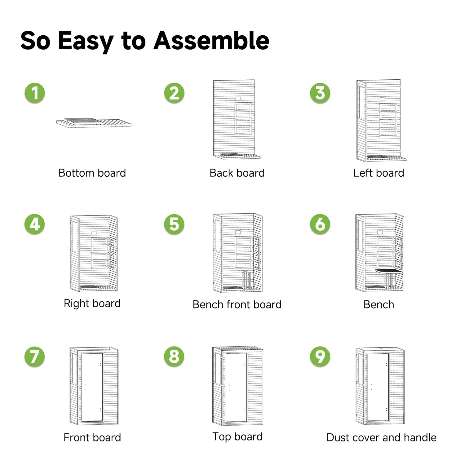 - Easy to Assemble - Modular design with tongue and groove design allows for quick assembly and easy maintenance. The indoor sauna for the home will also be easy to move, as it will disassemble as easily as it went together.