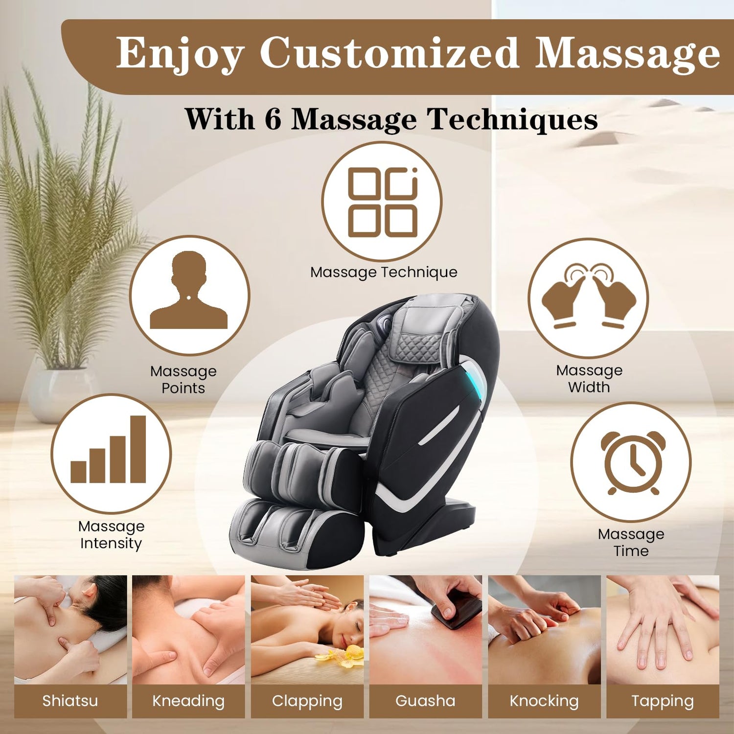 - Cutting-edge 4D Massage Chair:Experience a truly immersive and lifelike massage with robot hands, over 95% similar to a real-person massage. With airbag points for a full-body massage, 6 auto modes, and 5 techniques including Shiatsu, Kneading, Tapping, Knocking, Kneading & Tapping, as well as 3-level intensity airbag pressure, you have a wide range of options to customize your massage or target specific areas to help relieve body pain