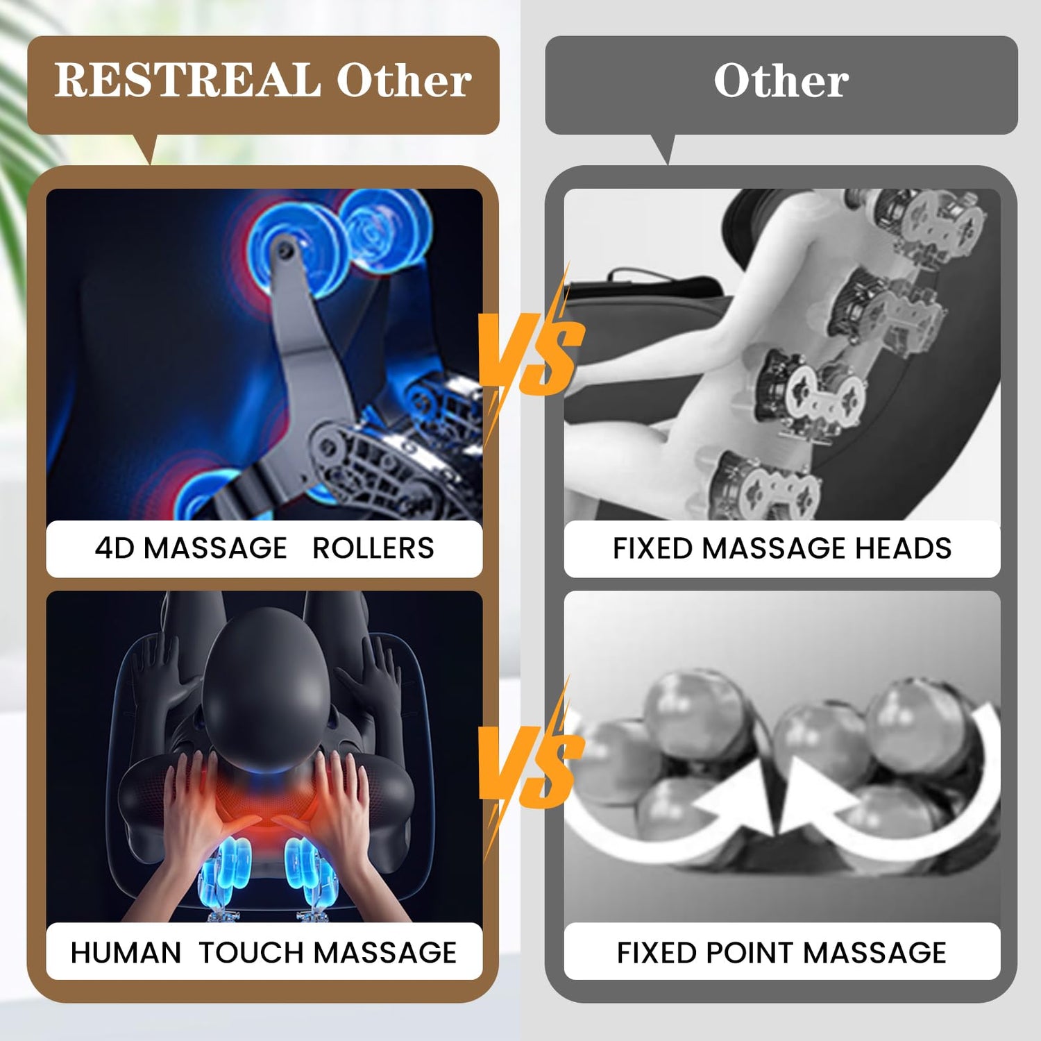 RESTREAL 4D Massage Chair Full Body, Zero Gravity SL-Track Shiatsu Electric Massage Chair Recliner, Airbag Massage, Deep Yoga Stretch with Heat Body Scan Bluetooth Foot Roller, Extendable Footrest