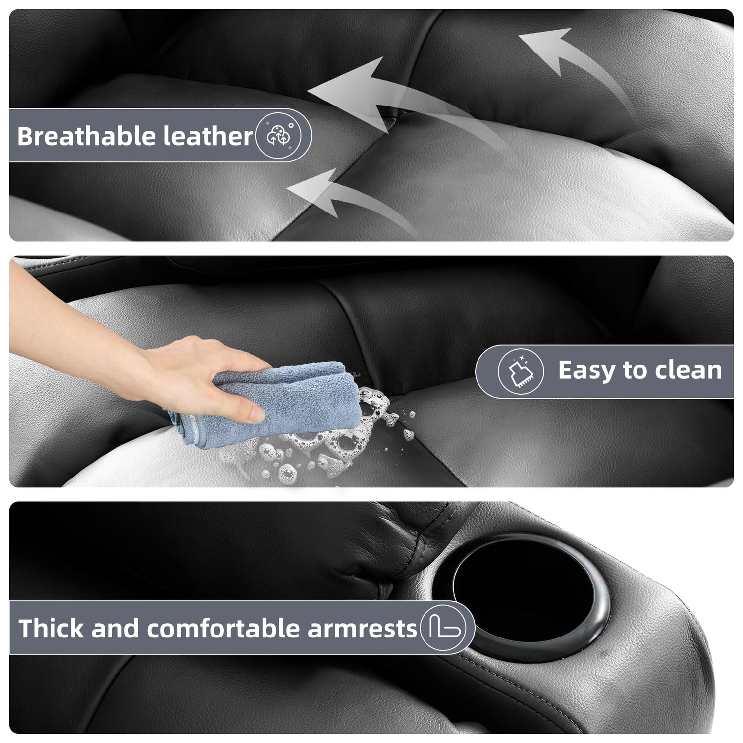 - [Comfortable and Durable]Experience unprecedented comfort and durability. Our leather material is not only breathable, but also durable, ensuring a smooth and soft feel, making you more relaxed. The backrest, seat cushion, and armrests are all filled with high-density sponge, which conforms to ergonomic principles and can tightly embrace your body. The sturdy metal frame can withstand a maximum weight of 350 pounds, ensuring long-lasting and reliable use