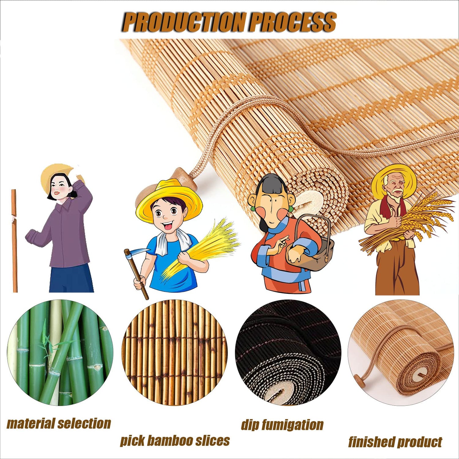 - [Customize Instructions] Our bamboo shades blinds provide enough sizes for you to choose, If your reed shades bamboo roller blinds are standard size, you can order directly from our size list. If you need other sizes, please order the closest size and send us the size you want. We will adjust the size. (Size list is sorted by width x height).