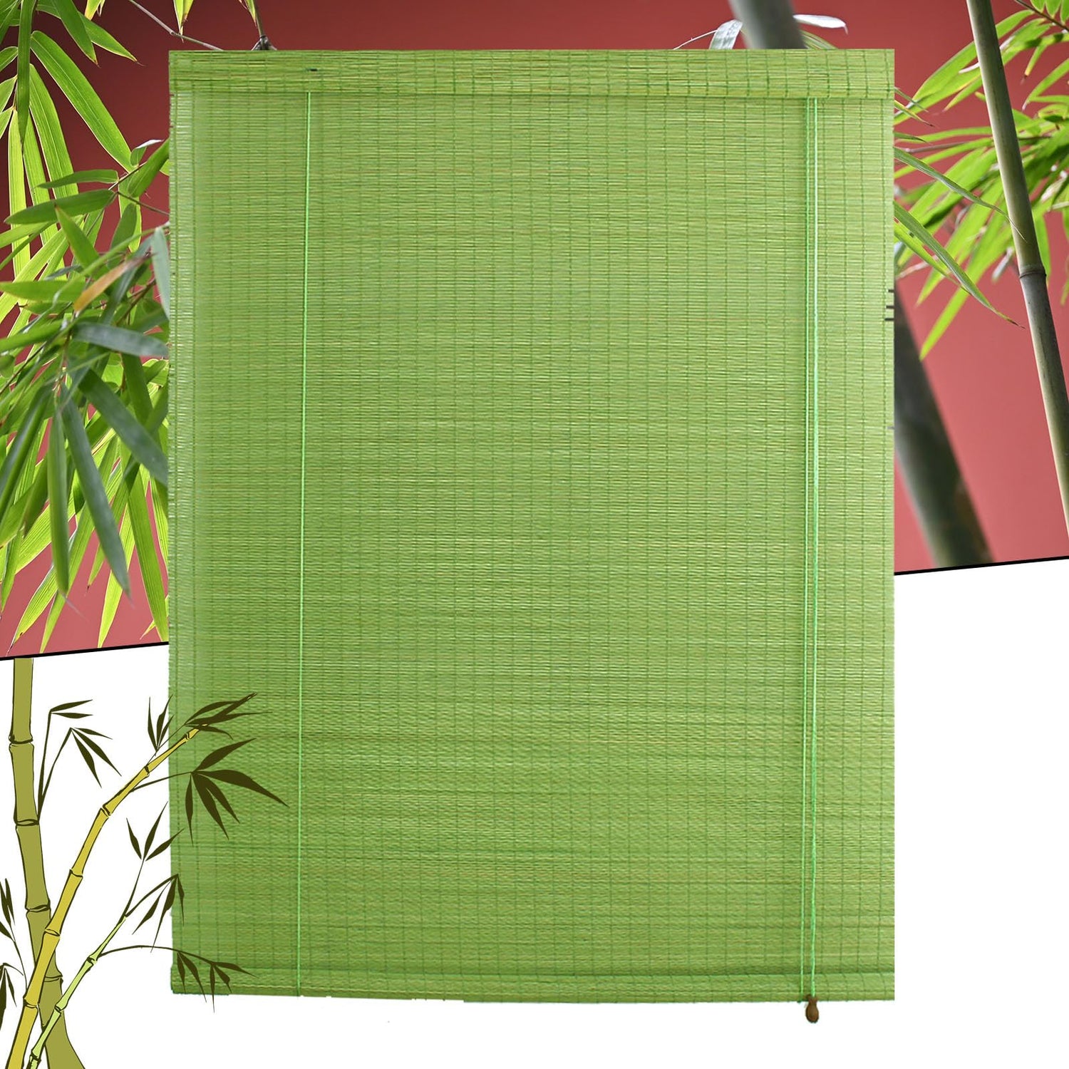 Retro Bamboo Blind Bamboo Roll Up Blinds Bamboo Roll Up Shades Bamboo Shades Blinds, Bamboo Roller Blinds for Outdoor Blinds for Patio Waterproof Outdoor/Indoor 26×67in/66×170cm (W×H) Green