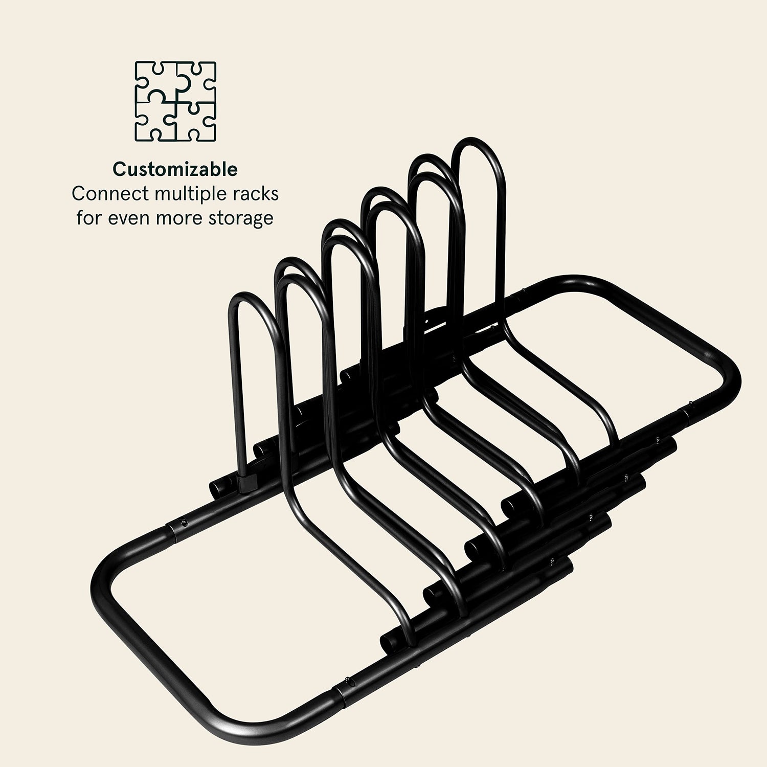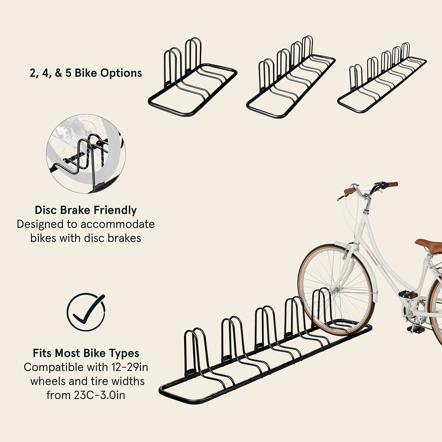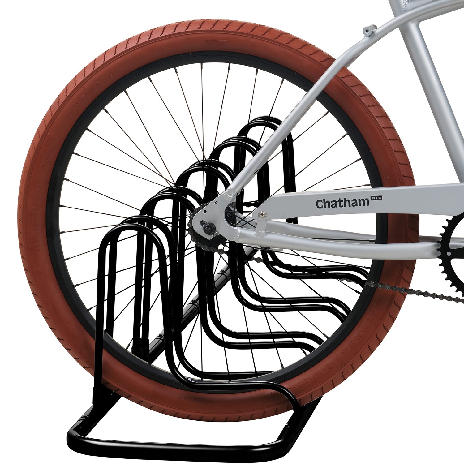 Retrospec Stash Rack 2, 4 & 5 Bike Floor Stand Bicycle Storage Organizer for Mountain Bike, Road Bike, Weather Resistant Fine Powder Steel Coating Fits Wheels up to 3", Black, 5 Bike