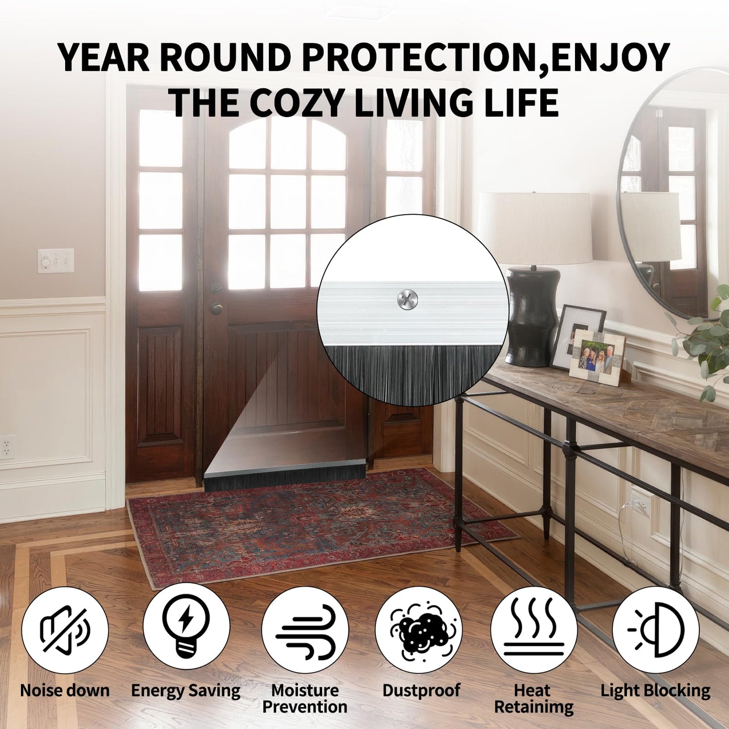 - 6. Our door sweep brush easily attaches to the bottom of your door with SUS 304 screws, creating a tight seal that will keep your home or workspace comfortable and energy-efficient.