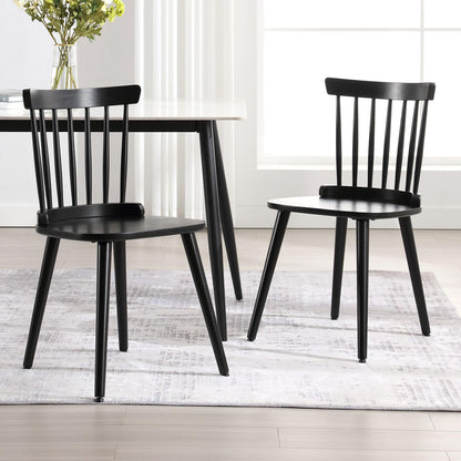 RêveLife Windsor Dining Chair Set of 4 Farmhouse Solid Wood Spindle Back Side Chair Mid-Century Modern Black Armless Kitchen Chair for Dining Living Room Farmhouse Restaurant