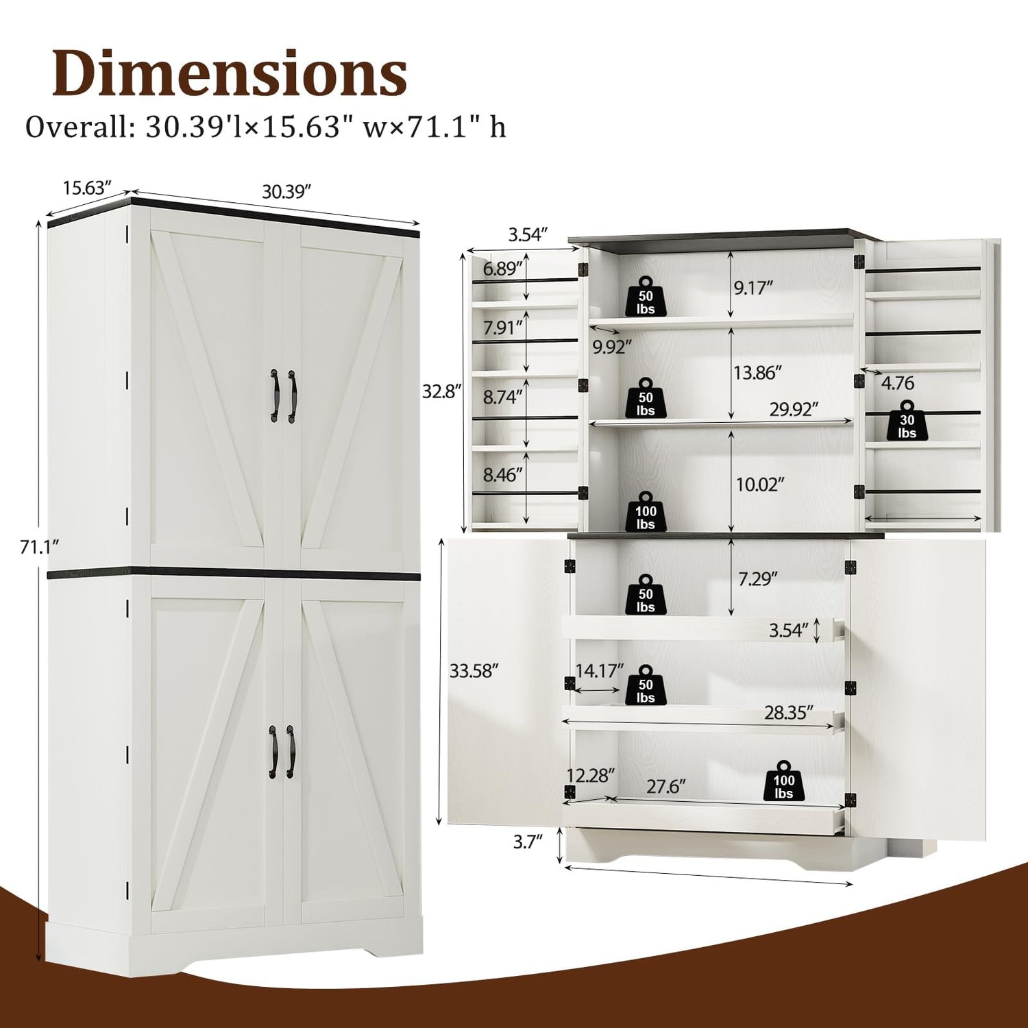 - All-matching Farmhouse Elegance: With its elegant X-patterned doors, this farmhouse pantry cabinet offers a timeless look that complements any kitchen decor, enhancing the rustic charm and inviting ambiance of your space