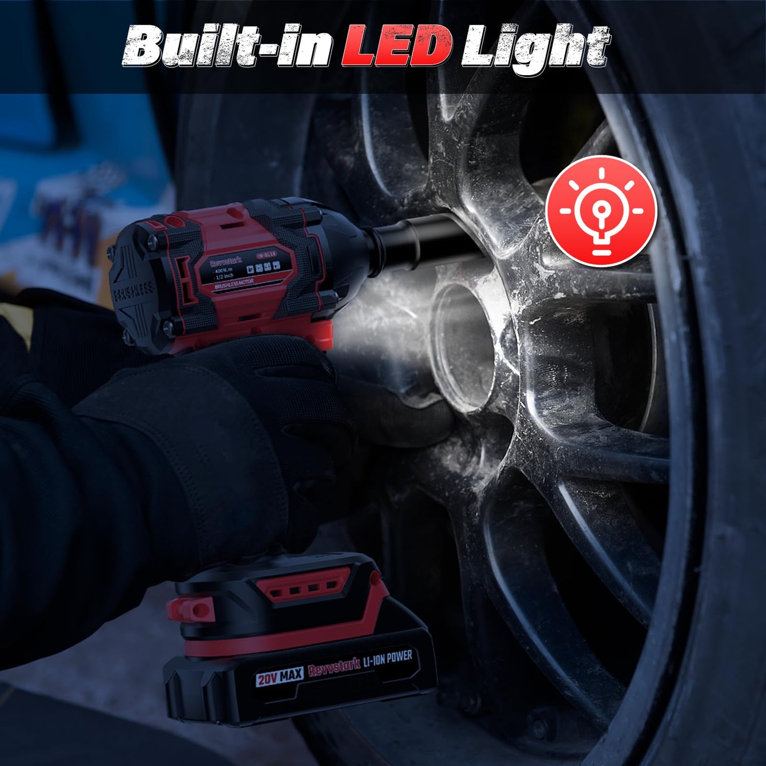 Revvstark Impact Wrench, Max Torque 295 Ft-lbs / 400 N.m Cordless 1/2 Impact Driver, 20V 3000RPM Brushless Motor, 2.0Ah Li-ion Battery and Fast Charger, 4 Pcs Sockets Included