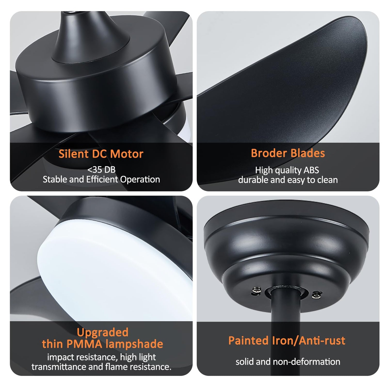 - LED Ceiling Fan Light Dimmable: smart ceiling fan with light dimming from 5% to 100% and have 4 light colors: cool light, warm light, neutral light, night light. Matte black ceiling fan memory keeps the light's last setting when you turn on again