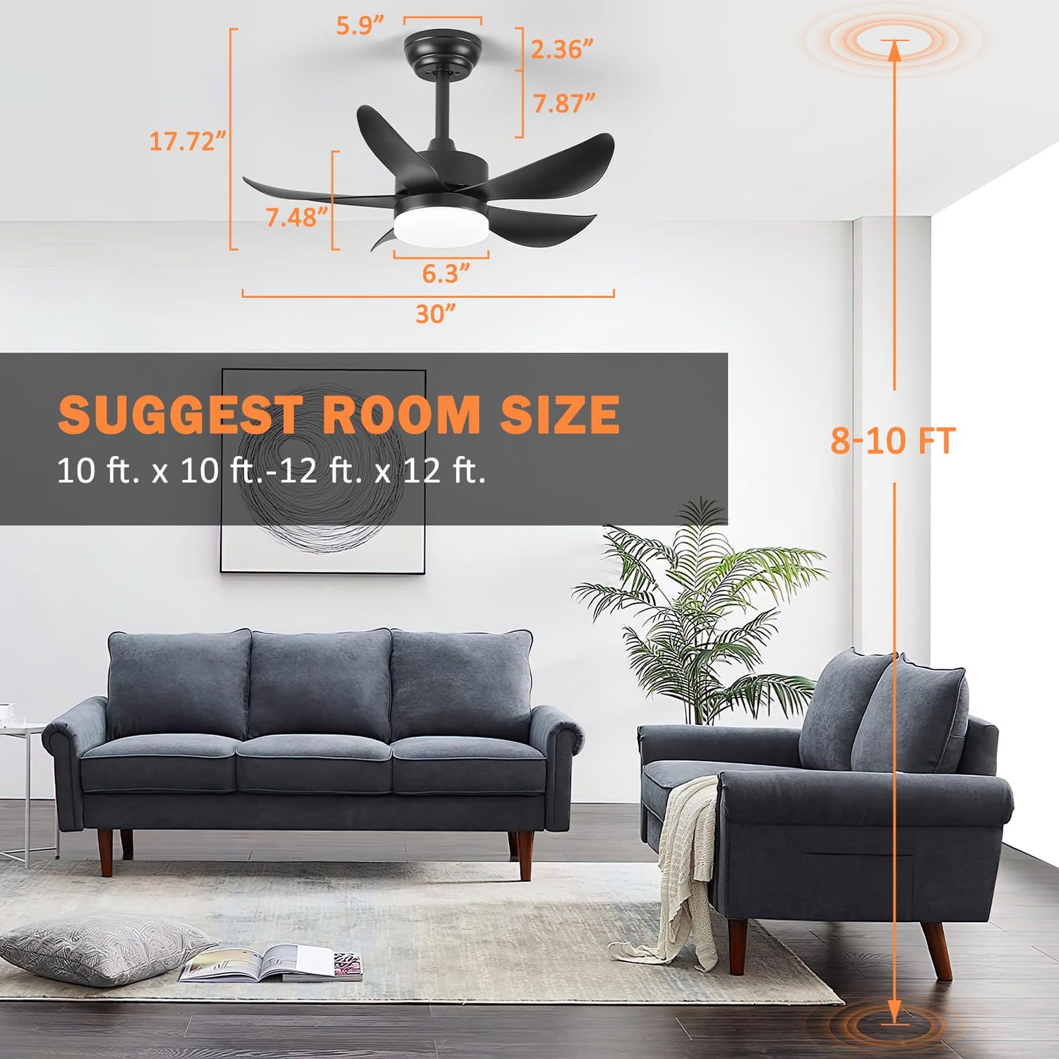 - Small Room Ceiling Fan with Light: Sleek 30" remote control ceiling fan,space saving,suitable for bedroom kitchen kids room home office. Besides, this is also an outdoor ceiling fan for patio porch and other outdoor spaces. (Note: not waterproof)