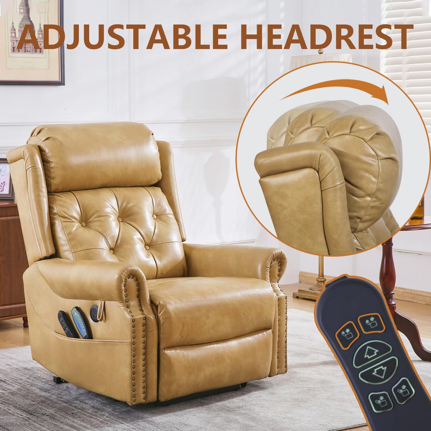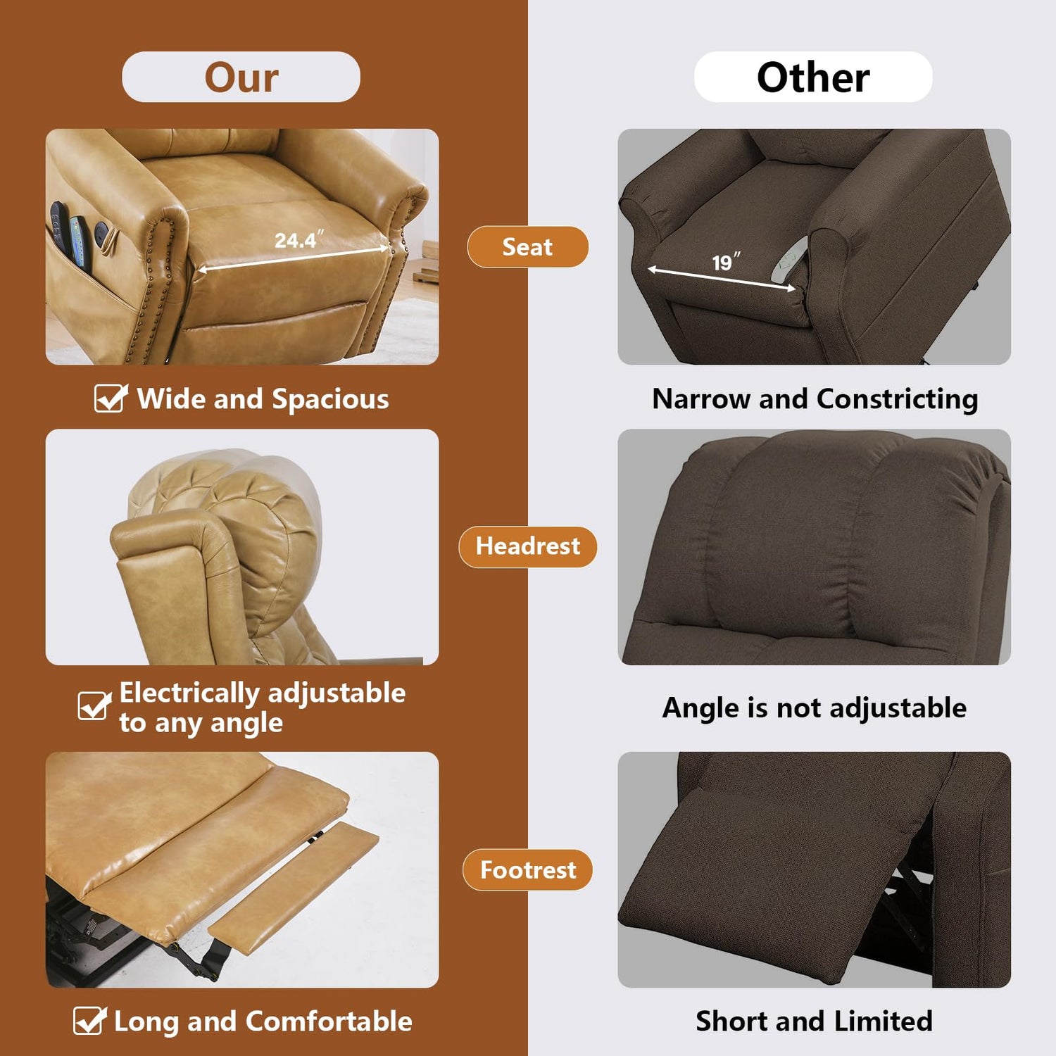 Rhevoy Large Power Lift Recliner Chair for Elderly, Lay Flat Oversized Recliner for Big and Tall with Massage and Heat, Adjustable Headrest, Extended Footrest, Infinite Position, USB Ports, Beige