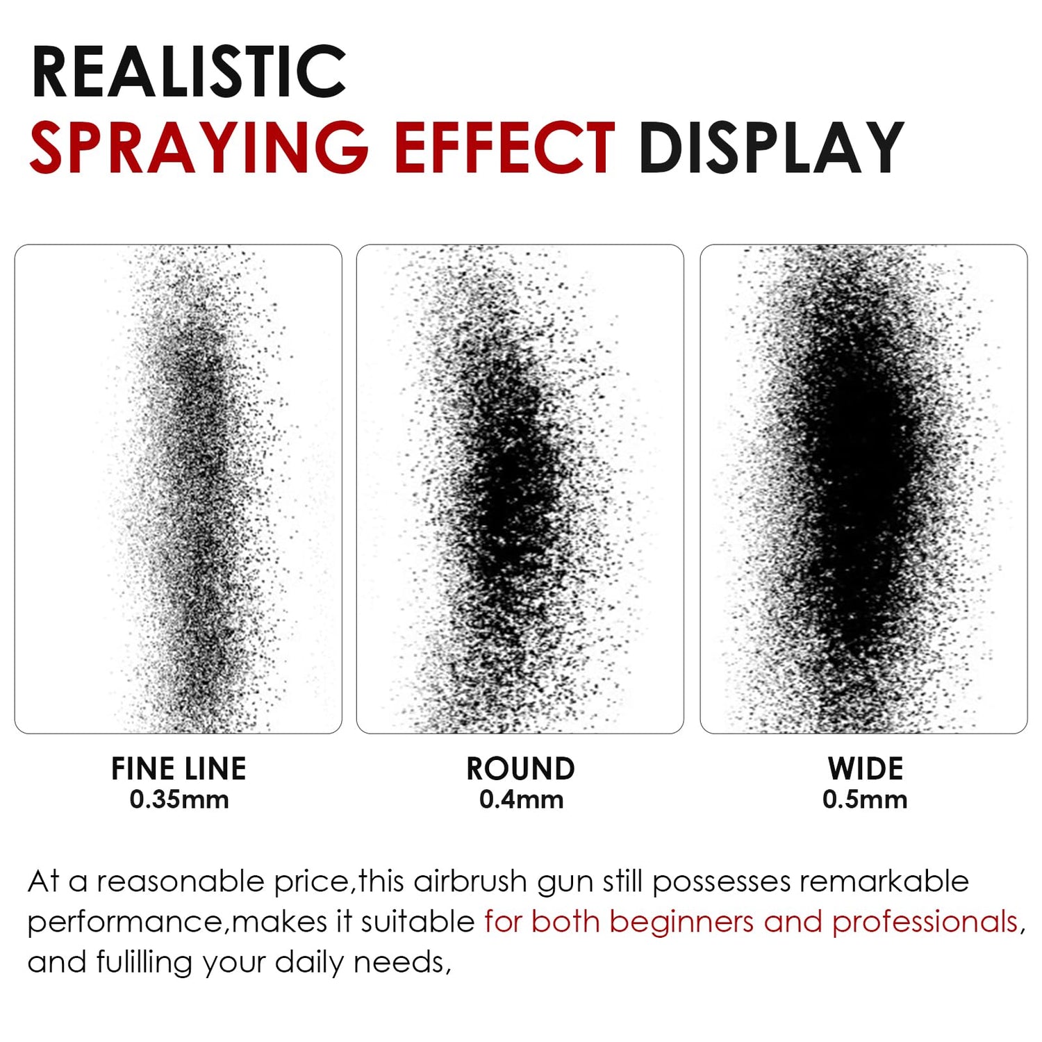 - Abundant accessories - The included 0.35, 0.4 & 0.5mm fluid tip set-ups allow this extremely versatile airbrush to be used for extra fine detail spray, overall spray or for 2" wide background spray. Adapts to a variety of uses and meets all your airbrushing needs.