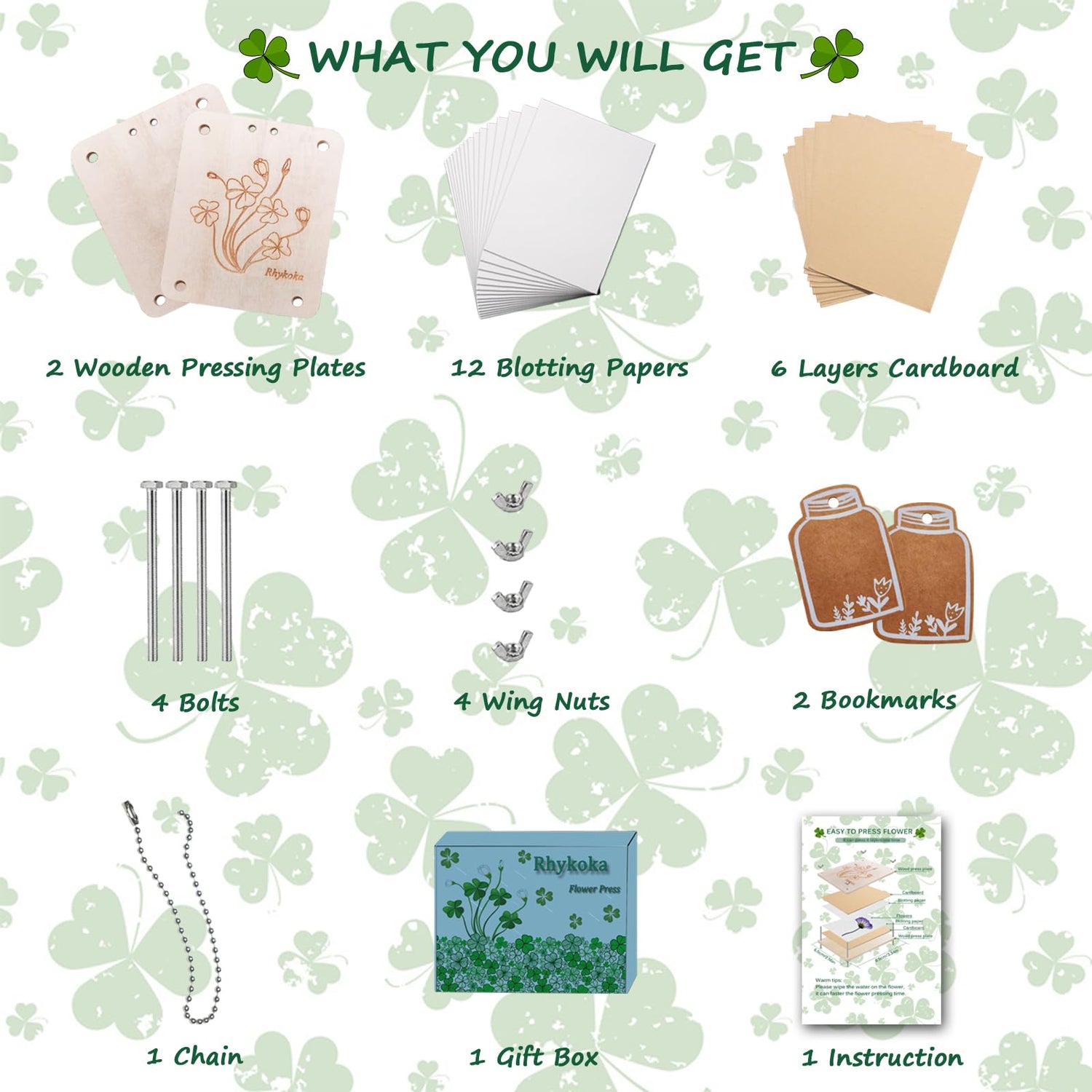 - Competitive Flower Press Kit You Will Get: You will get one whole set flower press kit, including 2 pieces wooden pressing plates, 6 layers cardboard, 12 pieces blotting sheets, 2 pieces bookmarks and 1 use manual.