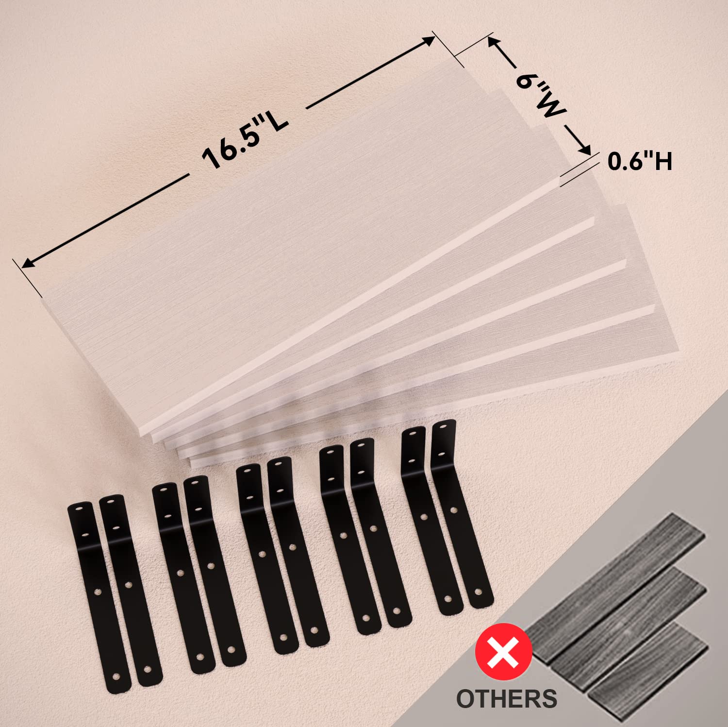 - 【Install in 5 Mins, Just Enjoy!】 - Just 5pcs wall floating shelf boards (No pre-drilled holes) and 10pcs shelf bracket. RICHER HOUSE Floating Wall Shelf pursues a principle: Using Less to Accomplish More. Our floating shelf for wall décor is super easy to assemble and DIY. The metal bracket can be installed on the top or bottom of the floating wall shelf. You can use it as wall décor shelves, bathroom shelf, bedroom shelf, kitchen shelf, and plant shelf. Just create your own wall space.