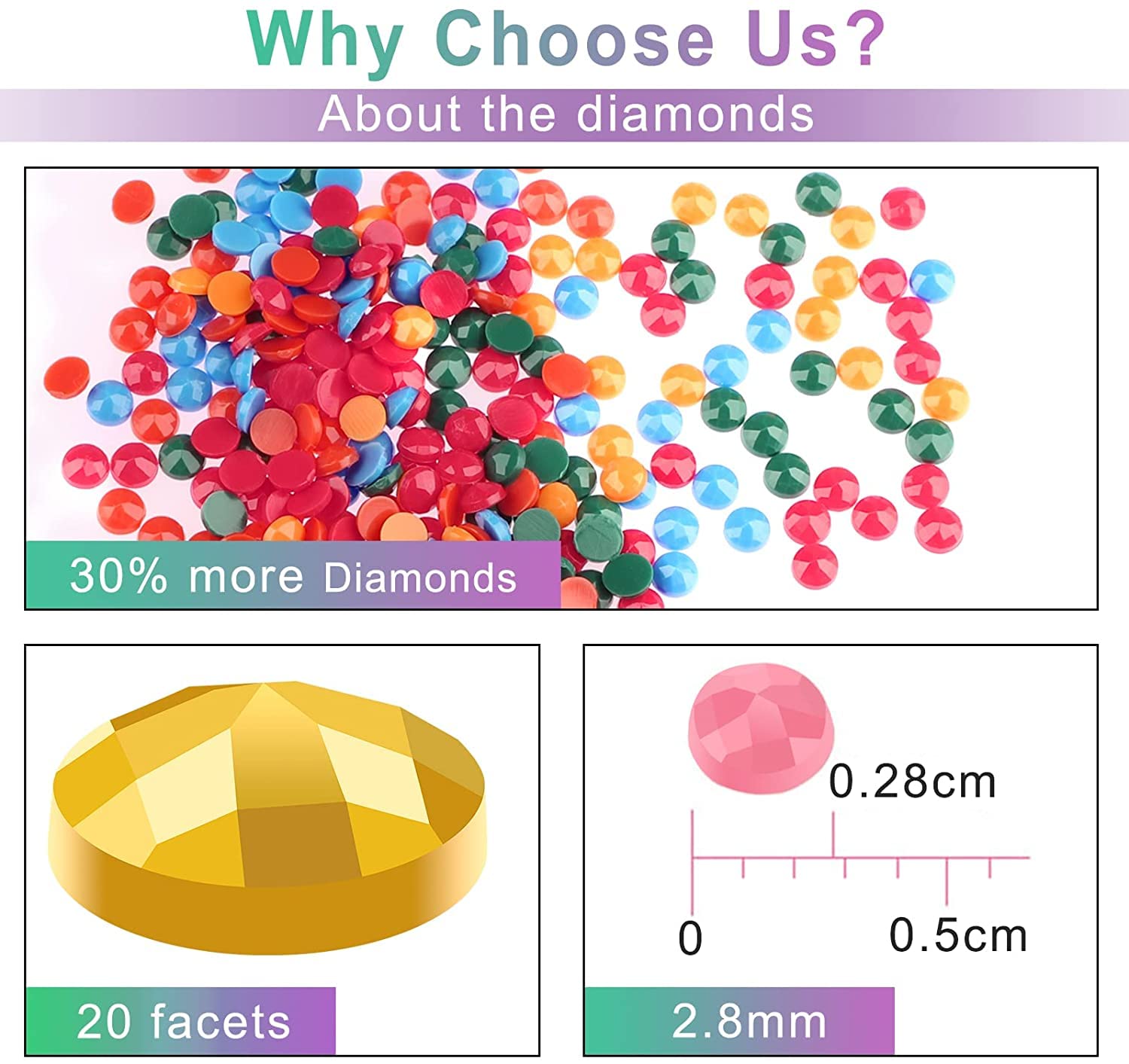 - FULL OF FUN: Diamond art helps reduce stress and anxiety, helps your brain to focus. It is a good choice for you to pass the time when you are bored.Finishing diamond art kits also is a process of share happy time with your family and friends