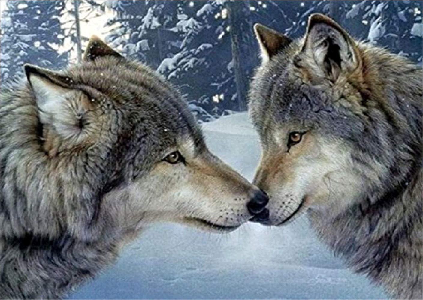 RICUVED Diamond Art Kits, Wolf Diamond Art Kits for Adults Full Drill Diamond Art Two Wolves Rhinestone Embroidery Arts Craft for Home Wall Decor 16x12 inch