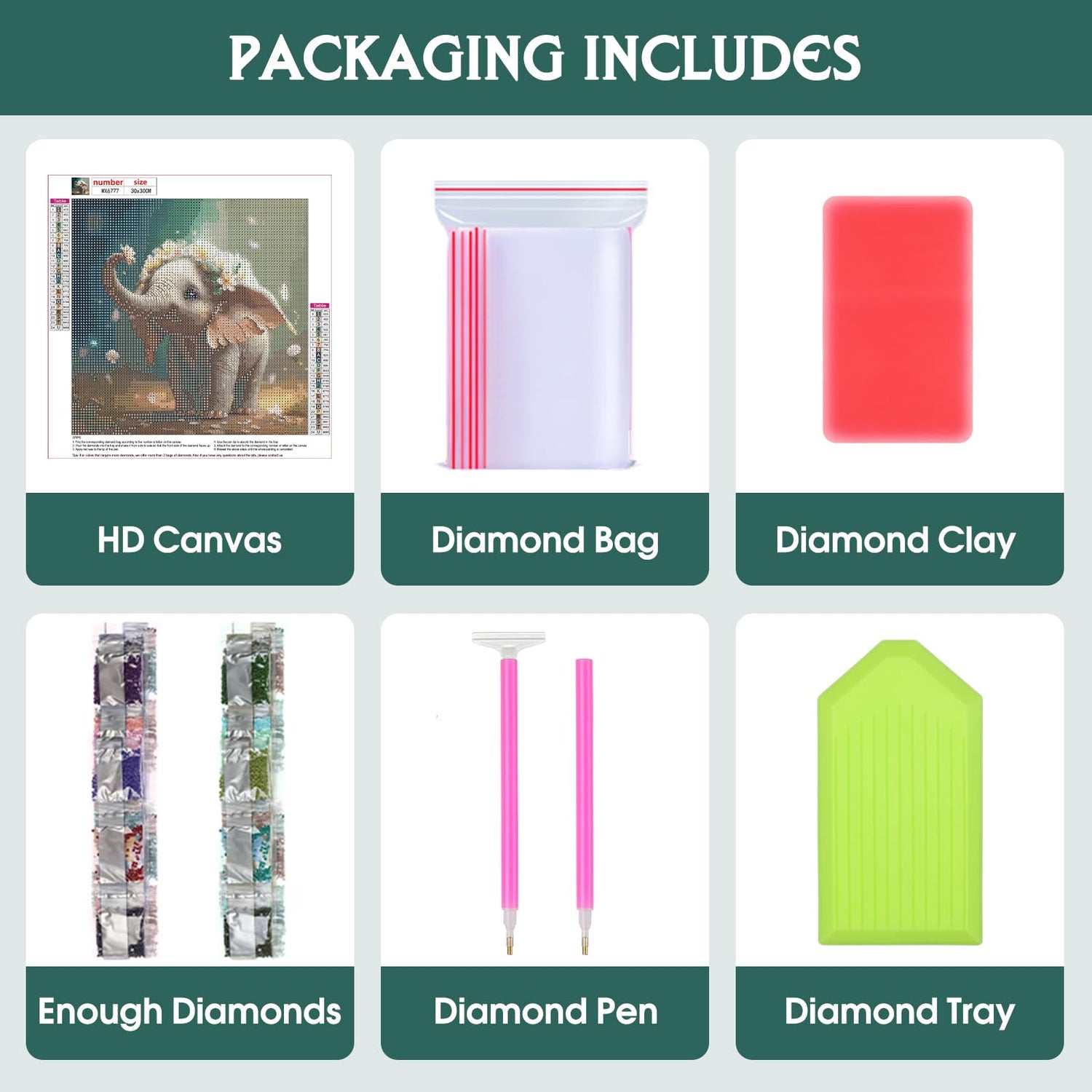 RICUVED Elephant Diamond Painting Kits for Adults, Diamond Art Kits 5D Animal Diamond Art Kits for Beginner, Diamond Dots Painting Full Round Drill Art and Crafts for Home Wall Decor 12x12 Inch
