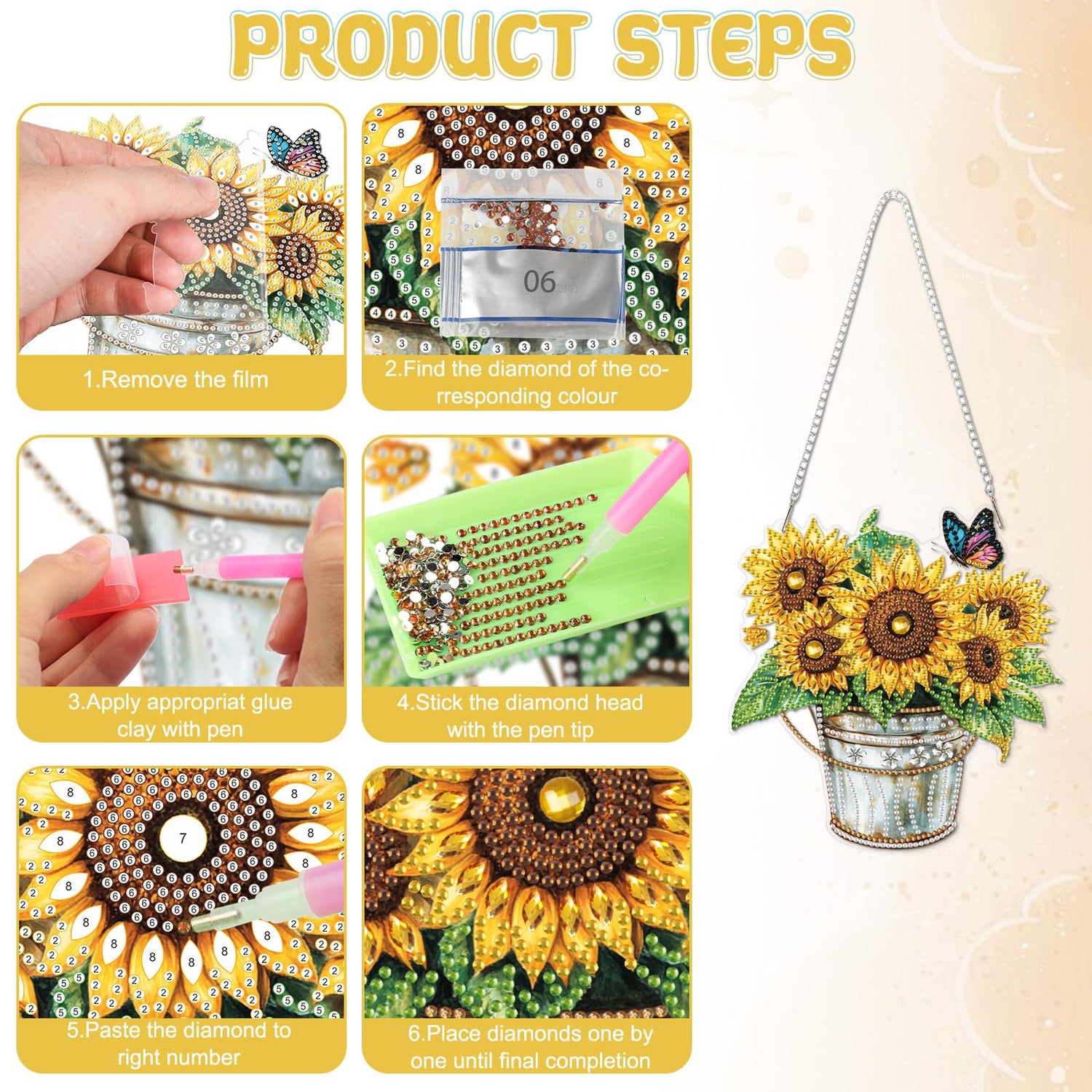 - DIY Hanging Diamond:Package comes with enough colorful diamonds, diamond hanging plate x1, iron chain x1, diamond pen x1, diamond tray x1, jelly glue x1, with beautifully crafted box