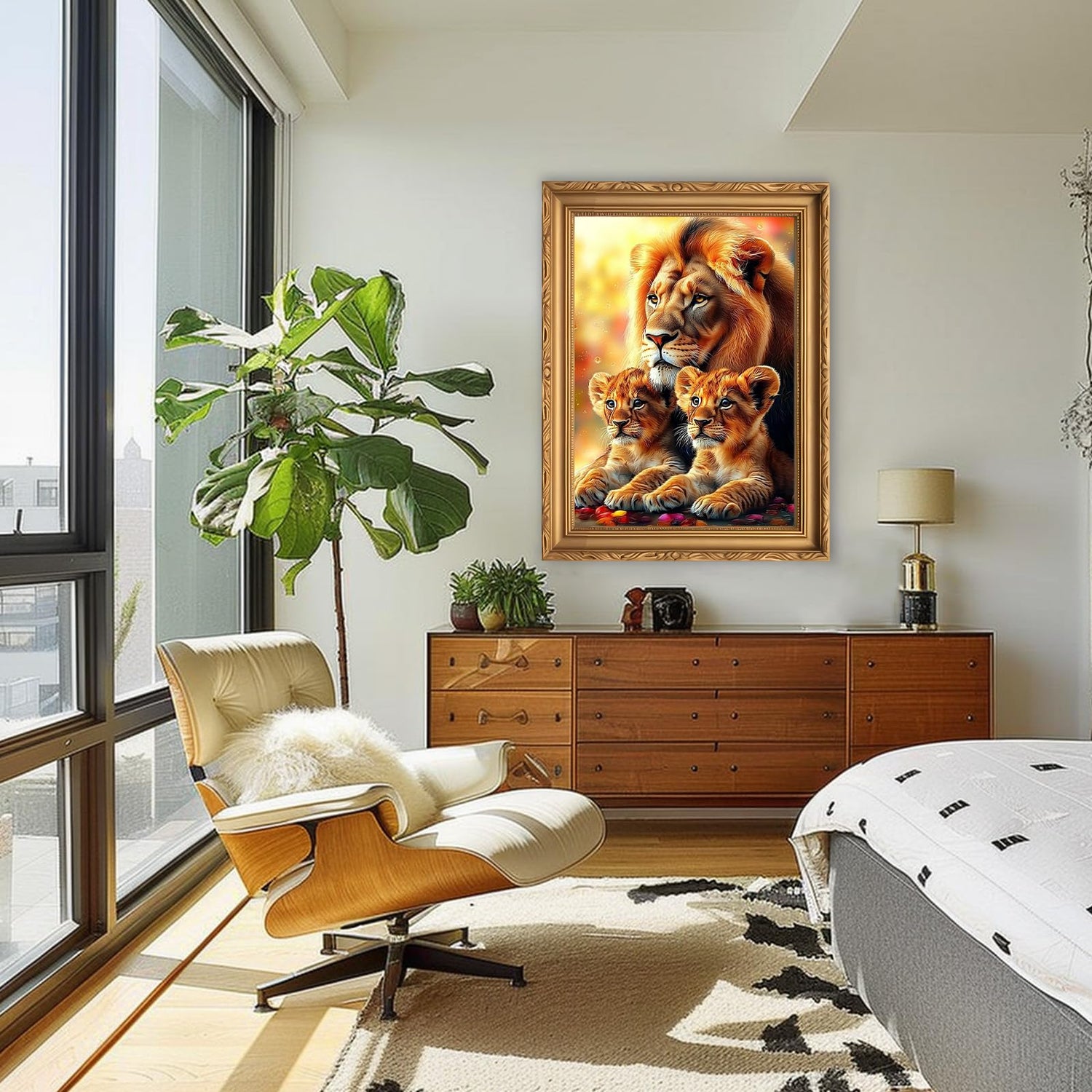 RICUVED Lion Diamond Painting Kits for Adults, 5D Animal Diamond Painting Diamond Art Kits for Beginners, Full Drill Diamond Art Diamond Gem Lion Family Diamond Painting Kits for Home Decor 12x16Inch