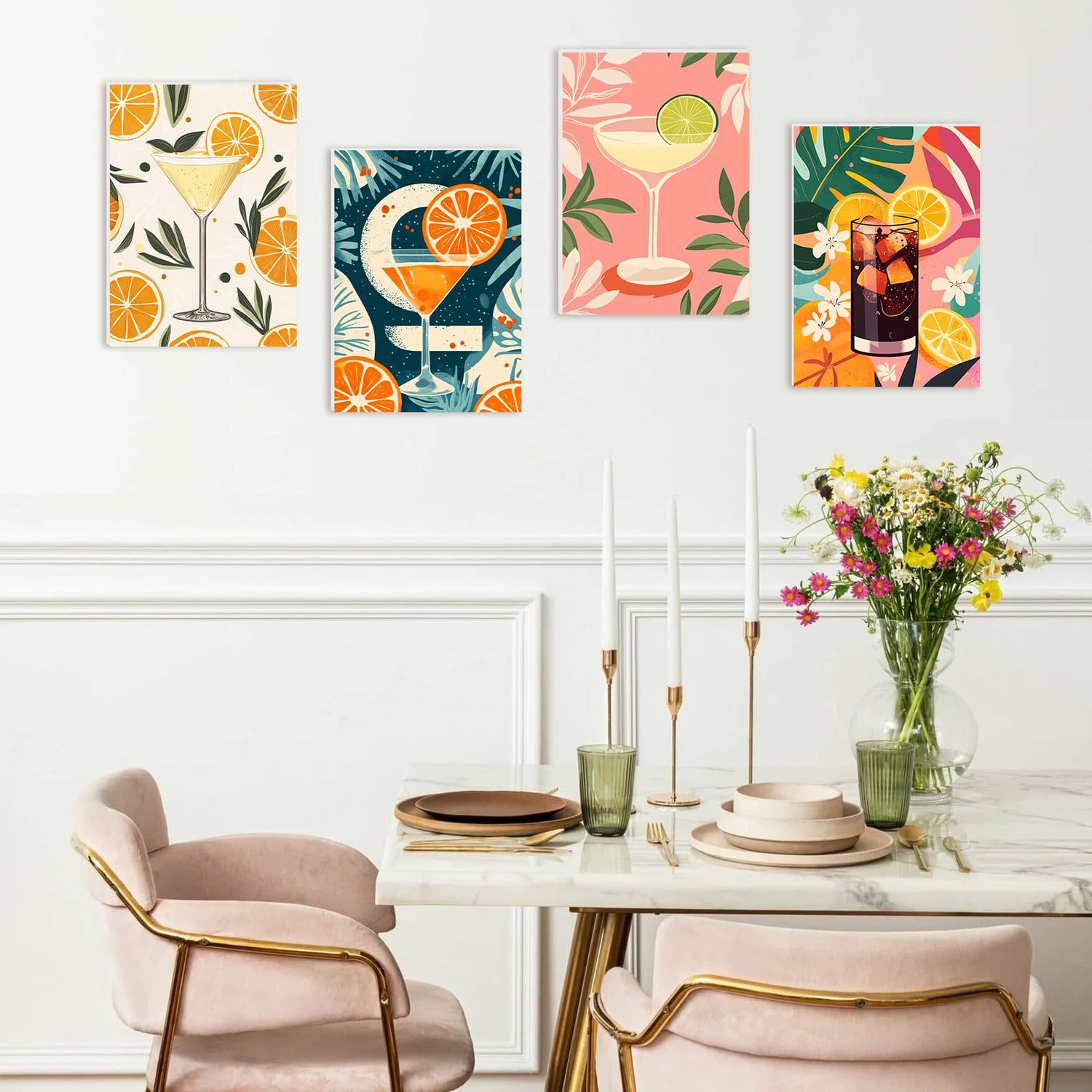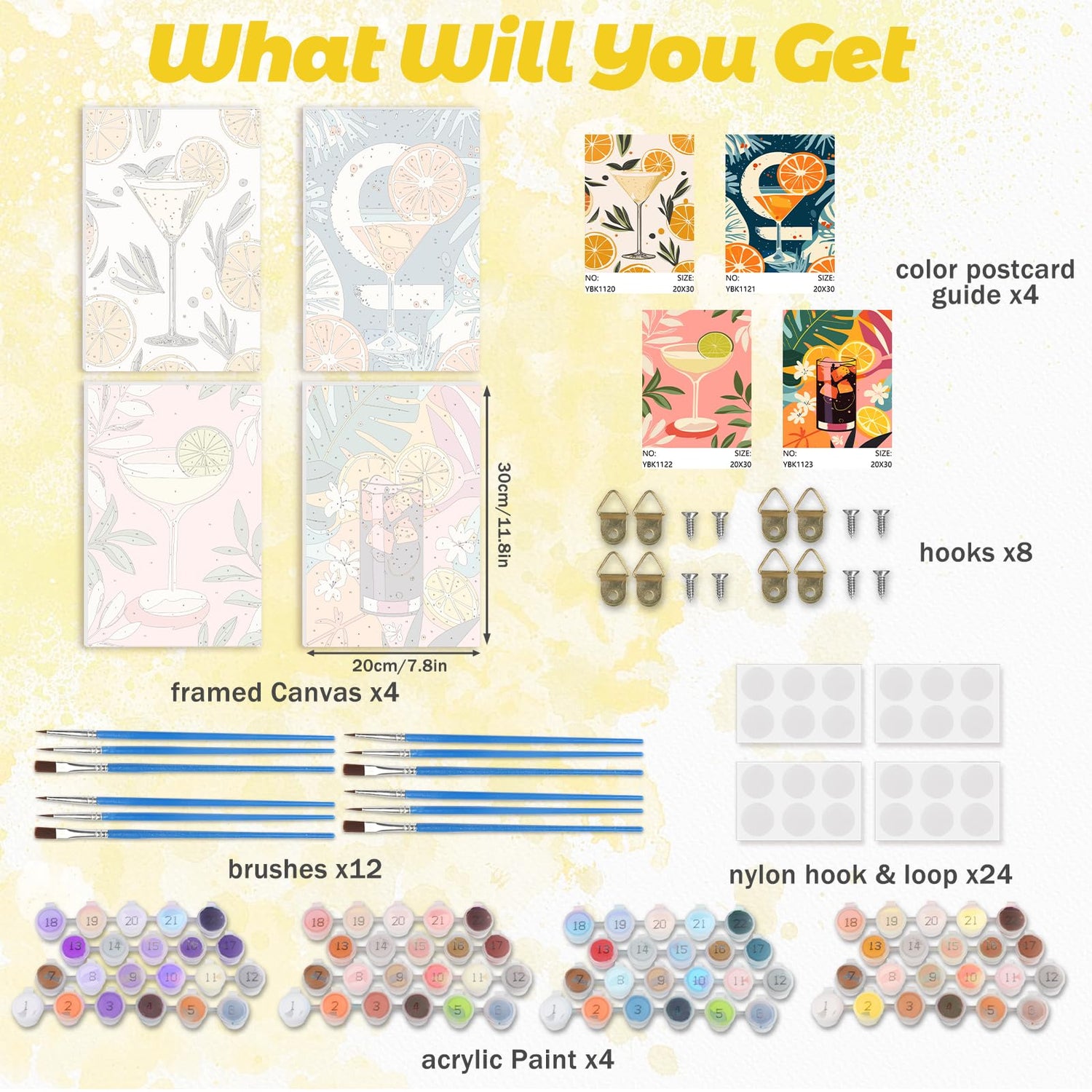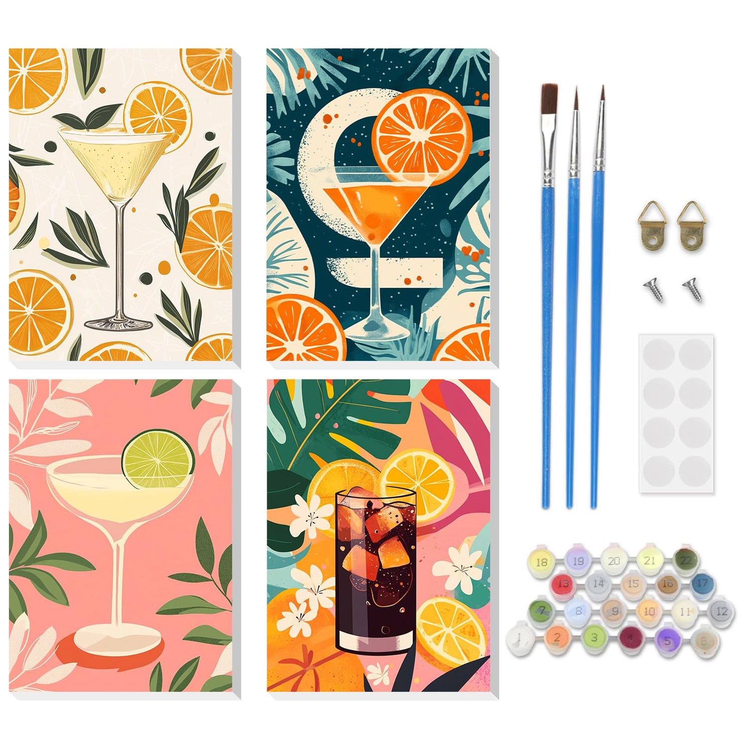 RICUVED Paint by Number for Adults Framed Canvas, 4 Pack Paint by Number Kits Arts and Crafts for Adults Beginner, Easy DIY Summer Drink Acrylic Painting Number Kits for Home Wall Decor(7.8X11.8inch)