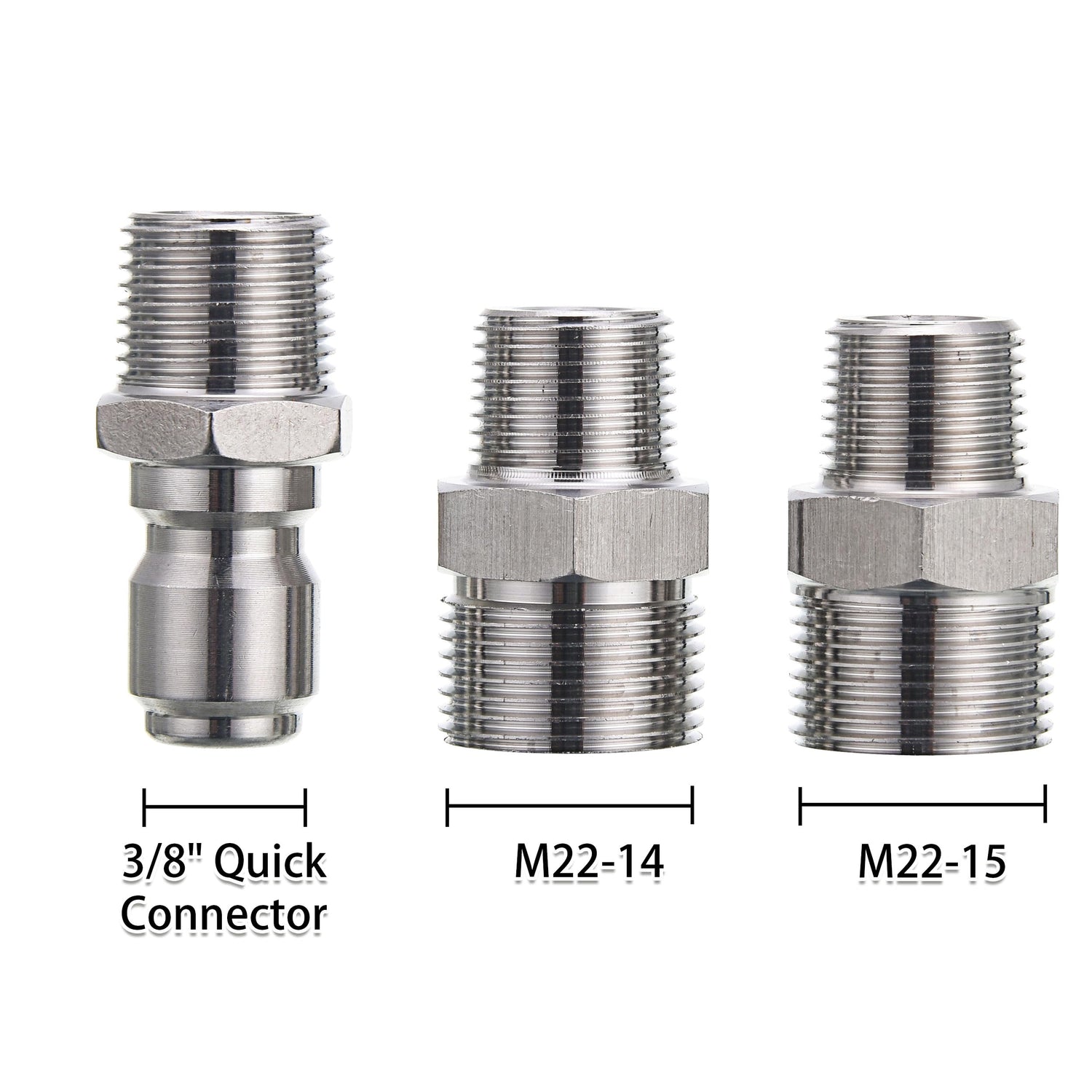 - Power washer short gun kit include one piece pressure washer short gun with 1/4’’ quick disconnect socket, one piece 3/8'' quick connector, one piece M22-14 mm fitting and one piece M22-15 mm fitting