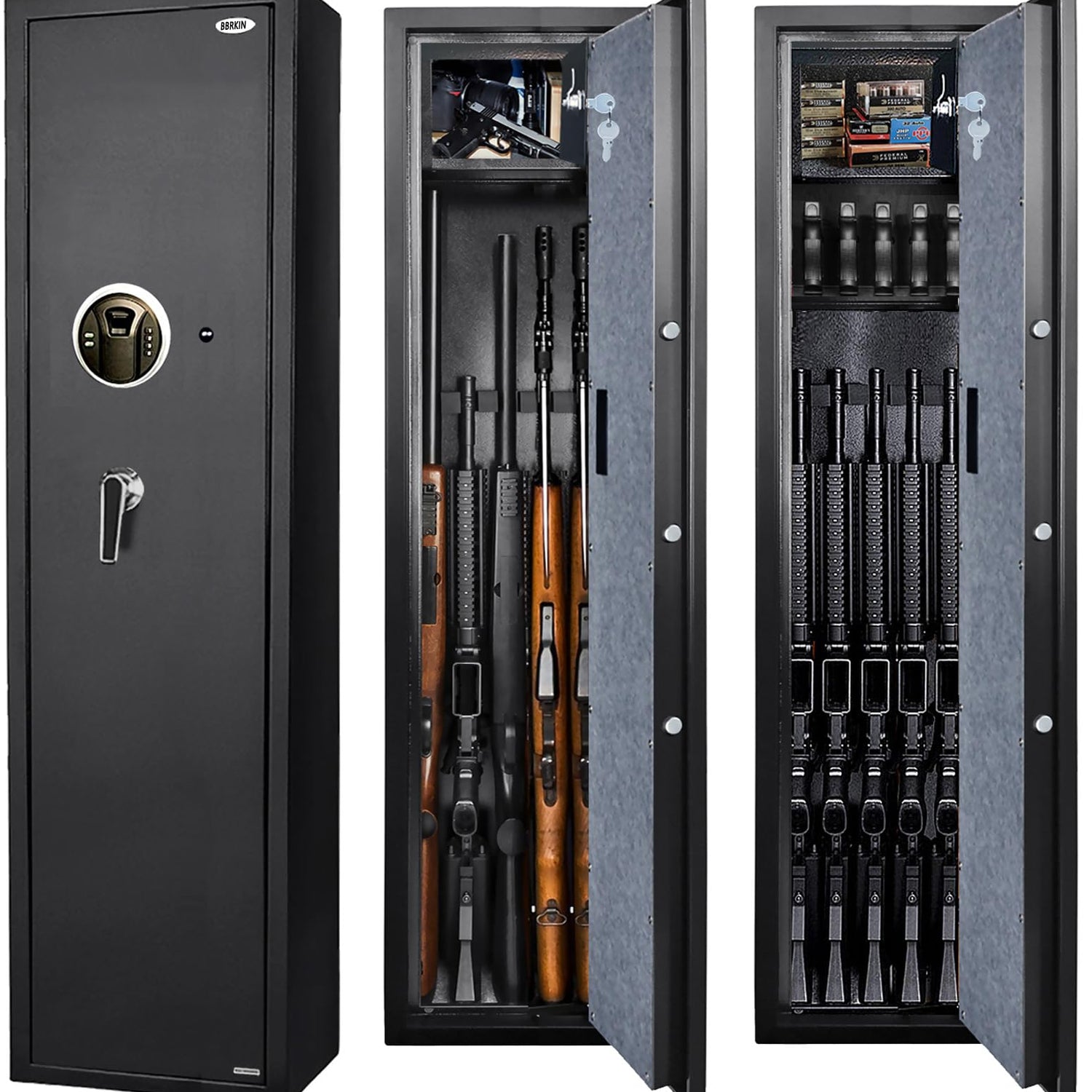 Rifle Gun Safe, Quick Access Long Gun Safe, 5-6 Gun Metal Rifle Gun Security Cabinet for Rifle with/Without Scope with Separate Handgun Rest, Lockbox and Removable Shelf