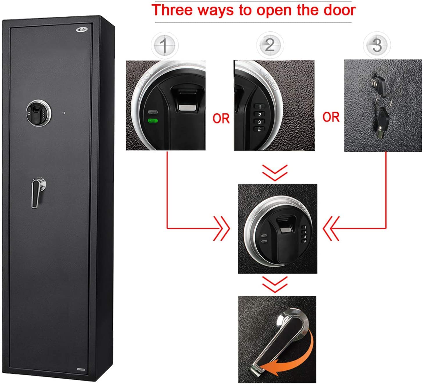 - ✅【Instant Home Defense, Quick firearm access】 For quick firearm access during emergencies, instantly unlock the safe with a reliable 2.5 sec scan. Prevents children and others from reaching inside. Codes and Fingerprints will be kept in the memory if batteries changed.