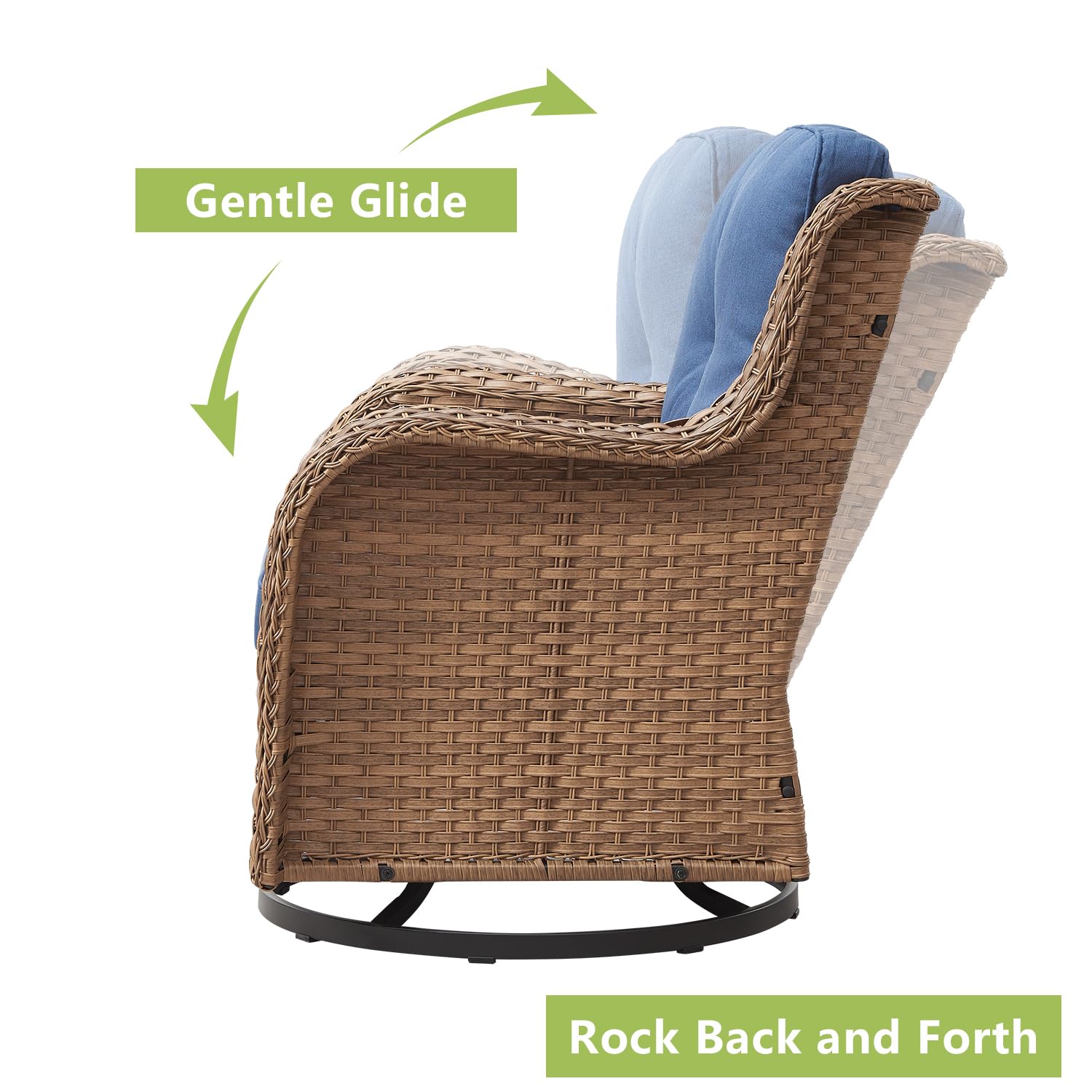 - 【Rocking and 360°Swivel】Enjoying all-around mobility with rocking/glider feature.Full rotation allows you to face or leave the sun easily.The unique design of swinging back and forth allows you to enjoy ultimate relaxation.