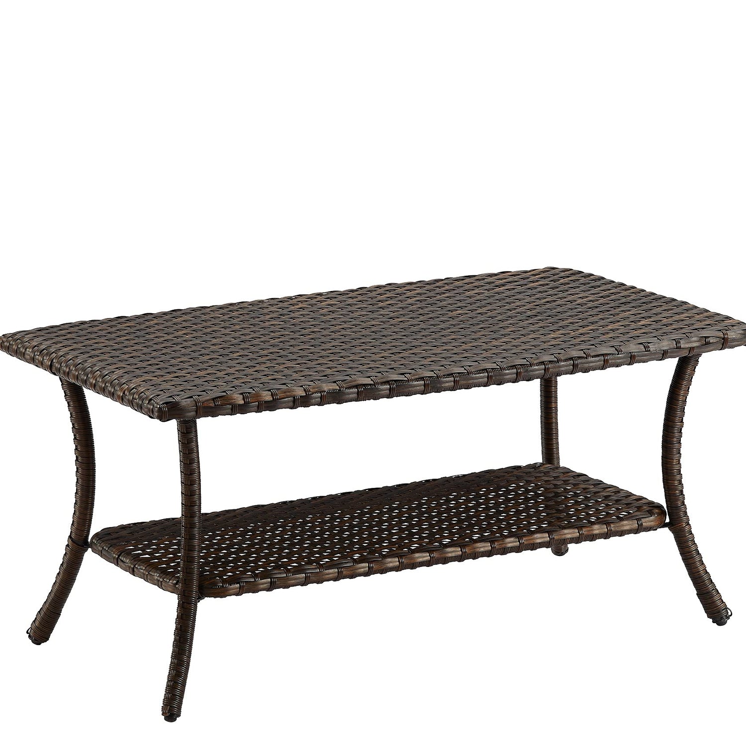 Rilyson Patio Tables Outdoor Coffee Table - Wicker Rattan Coffee Tables with 2-Tier Storage Shelf Side Table for Porch Deck Balcony Garden Outside Rectangle Brown
