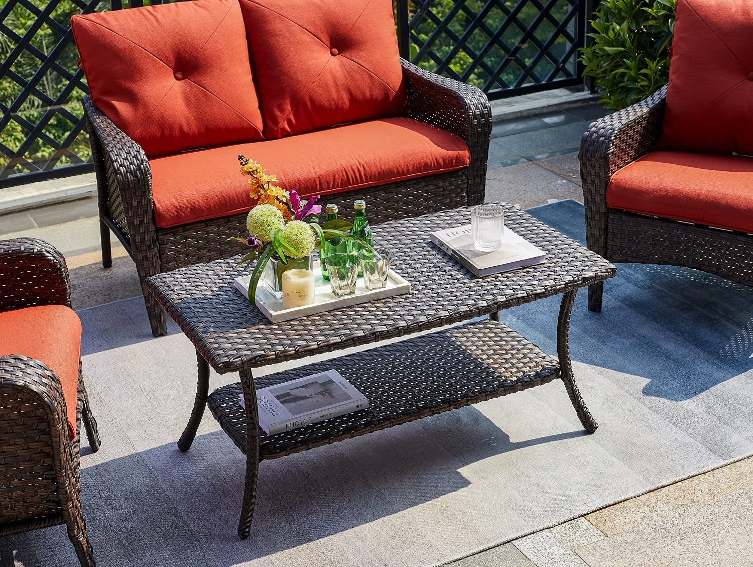 - MULTI-SCENE APPLICATION - The outdoor table suitable for patio,deck,front porch,balcony,poolside,garden.The wicker coffee table with glass top is also a great choice as a gift to your family and friends.