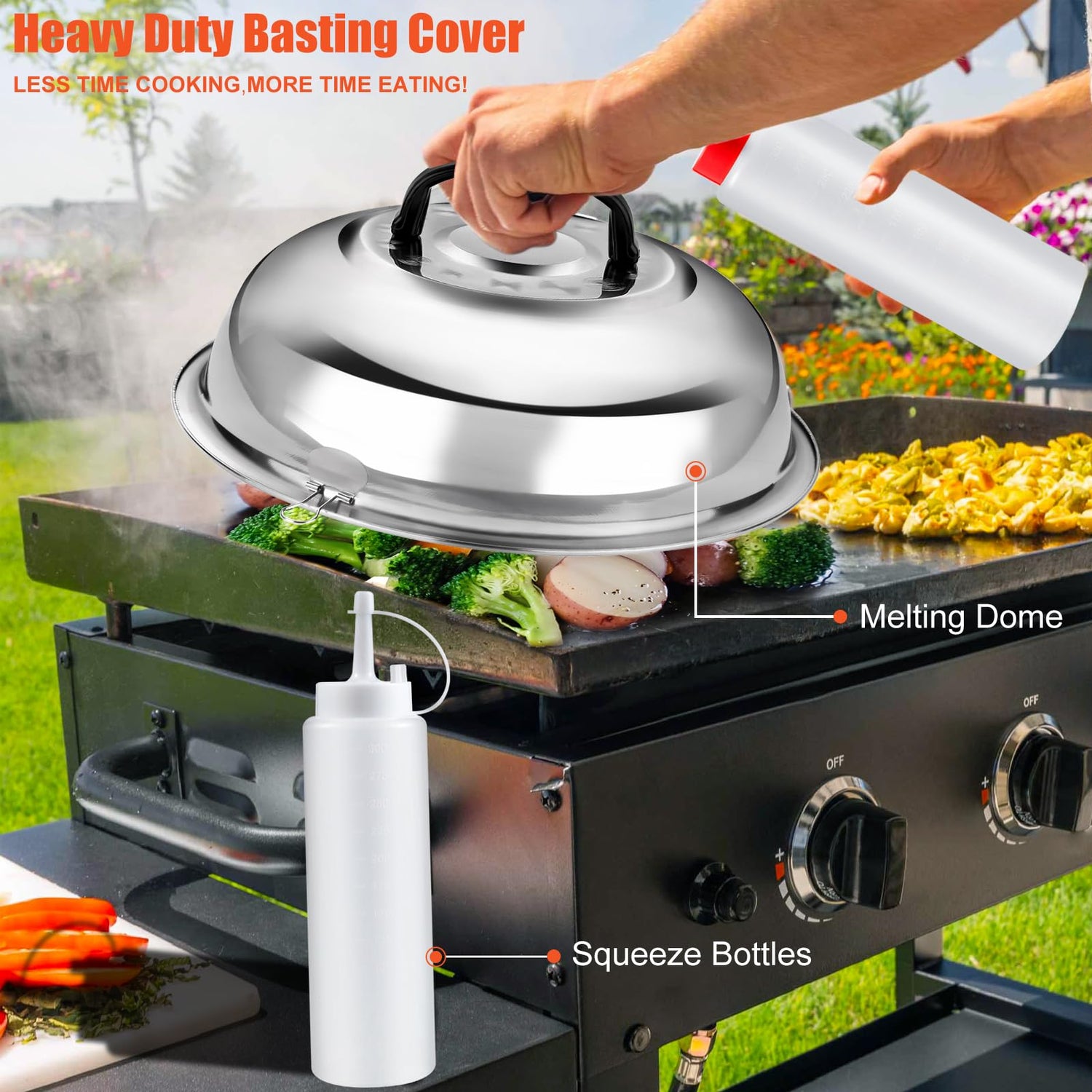 RINPIR 42pcs Griddle Accessories Kit for Blackstone, Flat Top Teppanyaki Spatula Set with Enlarged Spatulas, Melting Dome and Burger Press, Professional Hibachi Tools Gifts for Outdoor BBQ