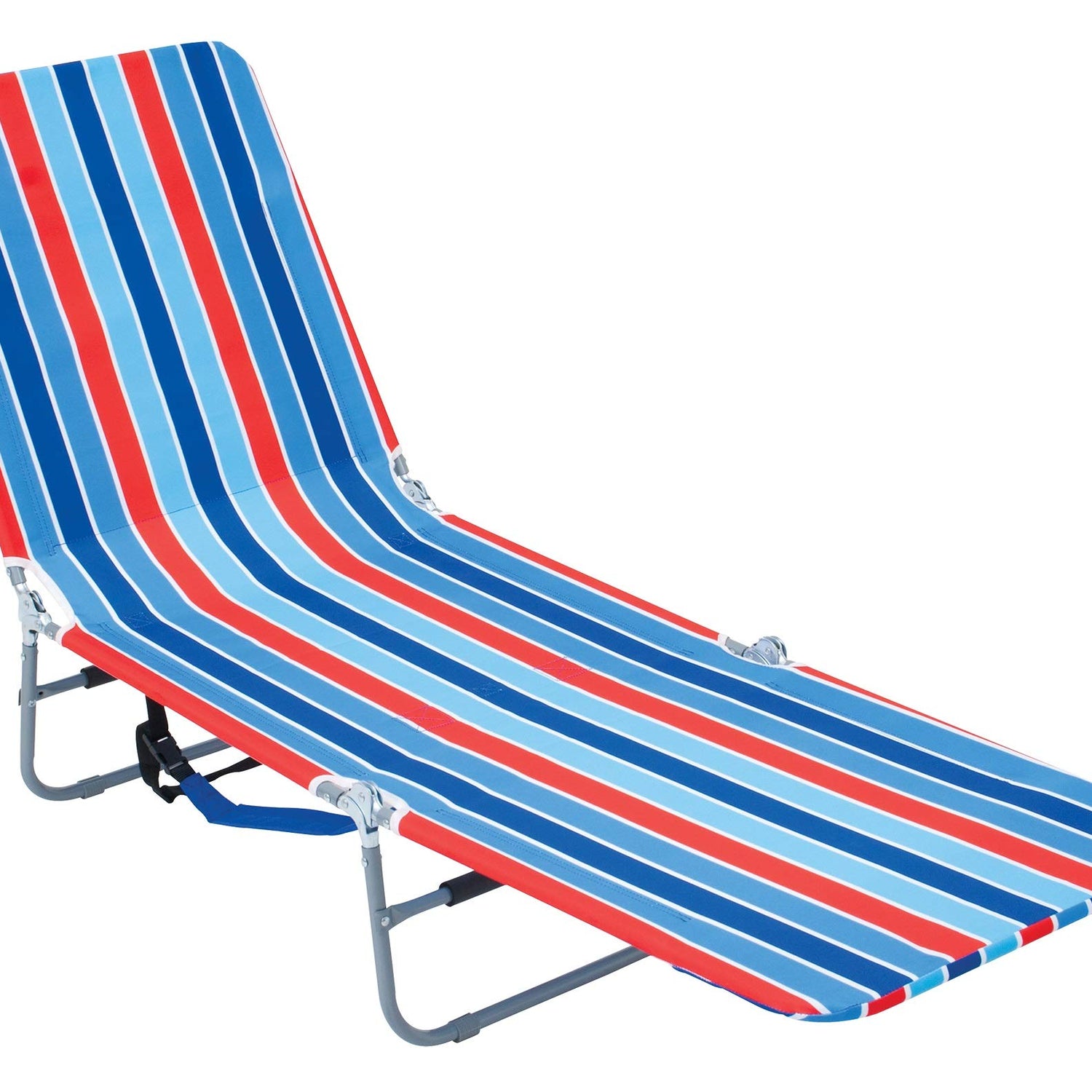 Rio Beach Portable Lay Flat Folding Backpack Beach Lounge Chair with Backpack Straps and Storage Pouch, Blue and Red