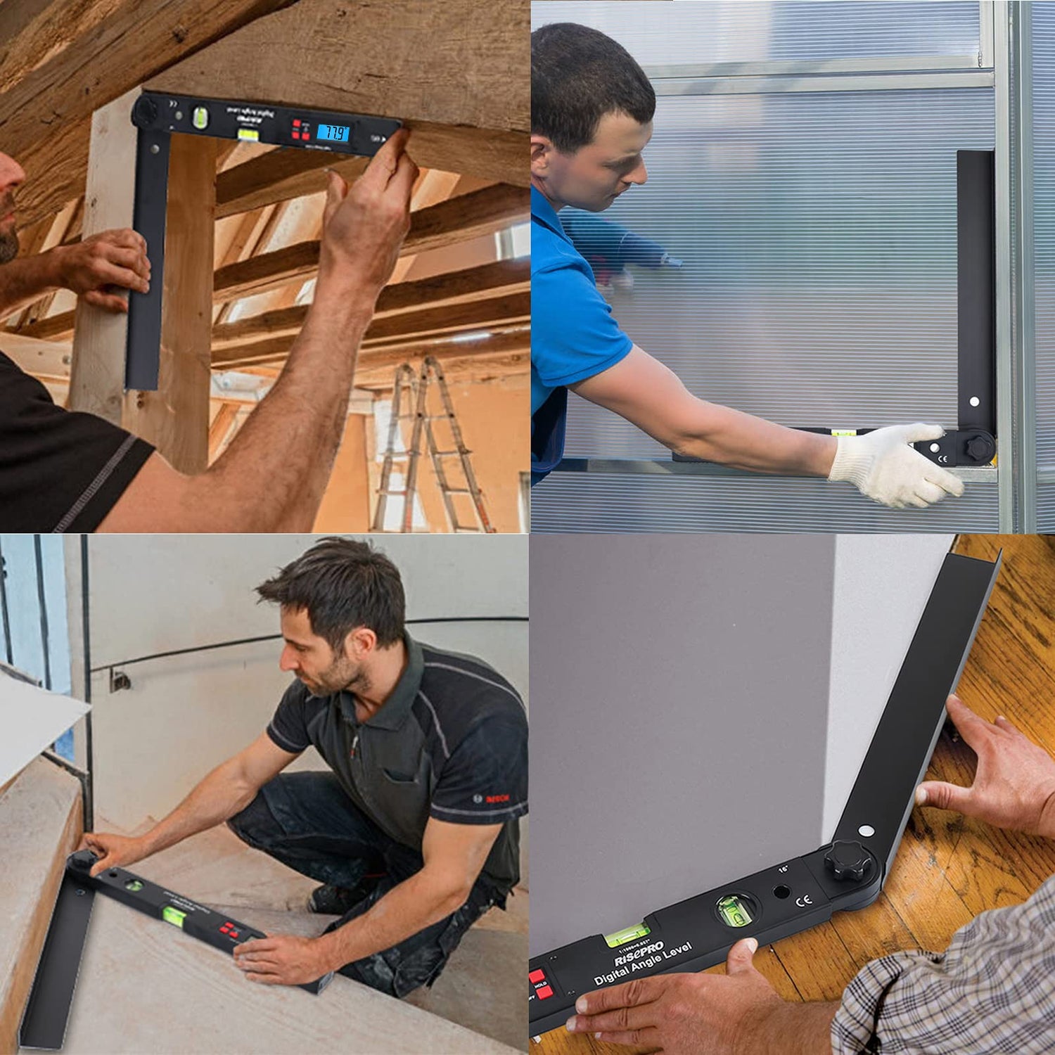- WIDE APPLICATIONS WITH 2 ARMS MEASUREMENT - The displayed reading corresponds with the internal angle between the angle moving arm and the base arm. It is perfect for measuring the exact angles such as trays, sloping roofs and handrails, while it can be used in lineation for woodworkers.