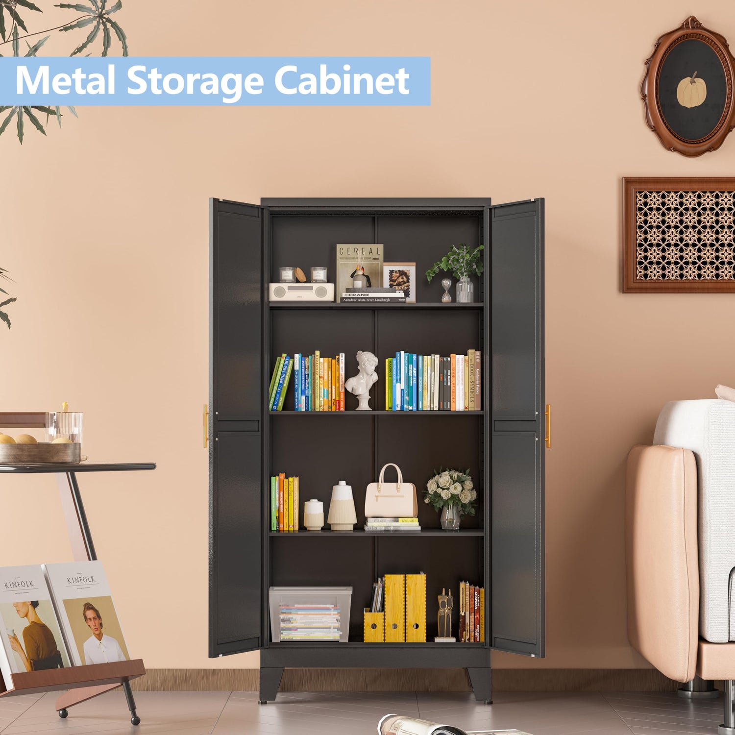 RISTERN Black Metal Storage Cabinet, 48" Steel File Cabinet for Home Office, Kitchen Pantry Storage Cabinet with Doors and 3 Adjustable Shelves, Tool Cabinet, for Office, Home, Garage, School