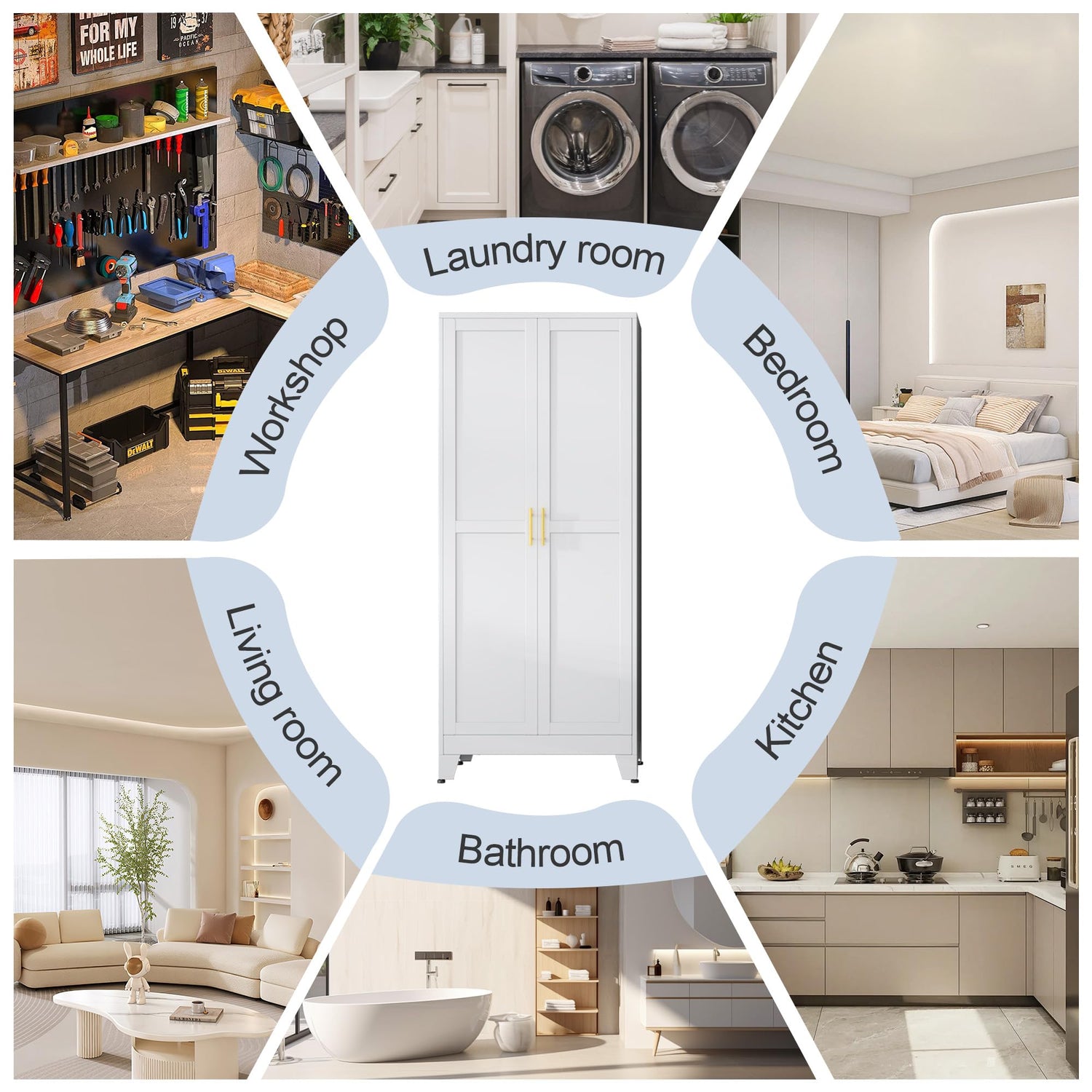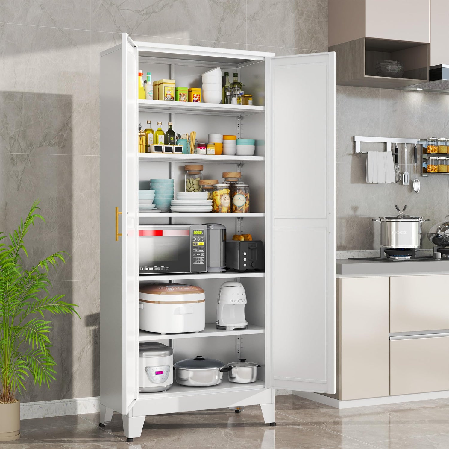 RISTERN White Metal Storage Cabinet,75" Steel File Cabinet for Home Office, Kitchen Pantry Storage Cabinet with Doors and 5 Adjustable Shelves, Tool Cabinet, for Office, Home, Garage, School