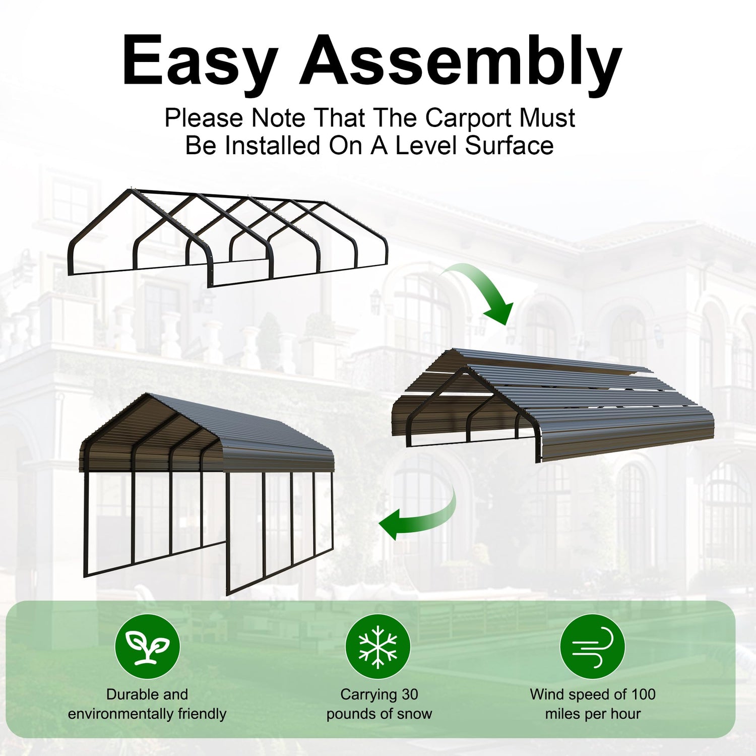 Details: Introducing the RITERYIFER 10x20 FT Heavy Duty Metal Carport Canopy—your ultimate solution for year-round protection and versatile vehicle shelter. Crafted with a heavier metal frame and reinforced steel cables, this heavy duty carport offers unparalleled sturdy construction designed to withstand snow load capacity and allweather protection. Whether you need a durable car shelter shade for your RV, boat shelter, or multiple vehicles, this galvanized metal roof car canopy provides reliable defense against sun, rain, snow, and wind, making it an ideal outdoor garage car shelter for any season. Built from high-quality materials including a heavy-duty steel frame and aluminum cover, this large carport is engineered as a permanent shelter for boats, cars, and trucks alike. Its adjustable height feature ensures compatibility with various vehicle sizes and offers ample clearance for RVs and pickup trucks. Equipped with removable sidewalls and doors—featuring roll-up and ventilated windows—this garage allows you to customize airflow and enclosure according to weather conditions. The removable walls and roll-up doors also make it ideal as a versatile party tent or outdoor shelter, perfect for gatherings and storage. RITERYIFER’s legacy stems from a rich heritage of crafting shelters with removable sidewalls and doors, blending rugged durability with practical design. Our commitment to quality assurance means every carport kit delivers great value, combining a galvanized frame carport with a tarp for carport that excels as a canopy storage shed or an allseason tarp for carport use. This 10x20 ft carport is more than just a garage; it’s a multi-functional shelter for boats, cars, and outdoor equipment, providing vehicle protection through a combination of heavy duty canopy strength and flexibility. Ideal for those seeking a garages and shelters solution, this outdoor galvanized car shelter supports a variety of uses—from a car shelter all weather option to a storage shed alternative. With features like rollup ventilated windows and removable doors, the RITERYIFER metal carport for 1 car meets the demands of customers looking for a heavy duty garage that adapts to changing seasons and environments. Experience peace of mind with a quality product designed to be a large garage and outdoor carport that stands the test of time. Choose RITERYIFER for your next carport canopy and enjoy a premium outdoor garage experience that combines tradition, innovation, and superior protection. This is not just a carport; it’s a testament to enduring craftsmanship and thoughtful design, delivering exceptional shelter for your vehicles and boats with a variety of uses tailored to your lifestyle.