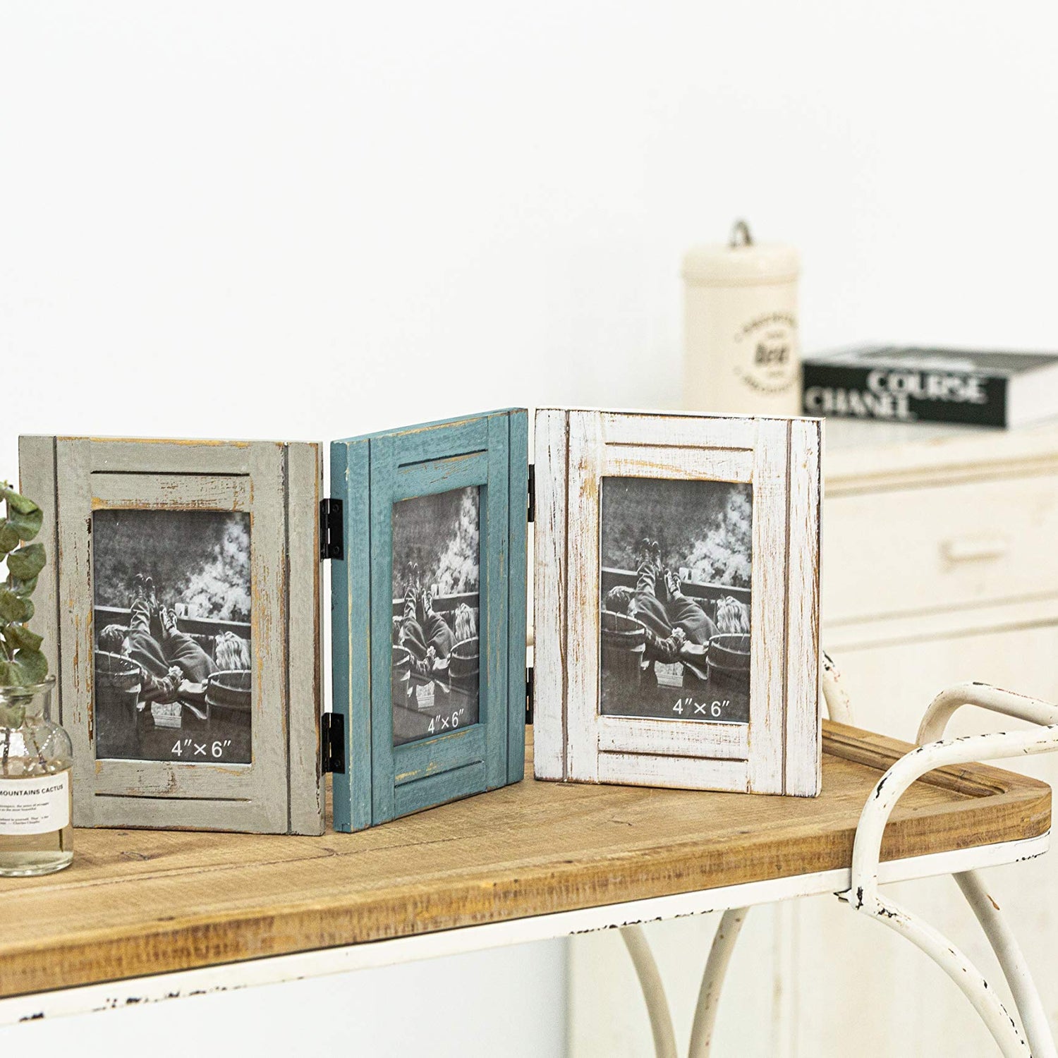 - Holds Three 4x6 Photos in a Hinged Triple Collage Frame – Perfect for tabletop displays or farmhouse wall decor, this rustic wood picture frame showcases 3 memories in one elegant distressed wood finish