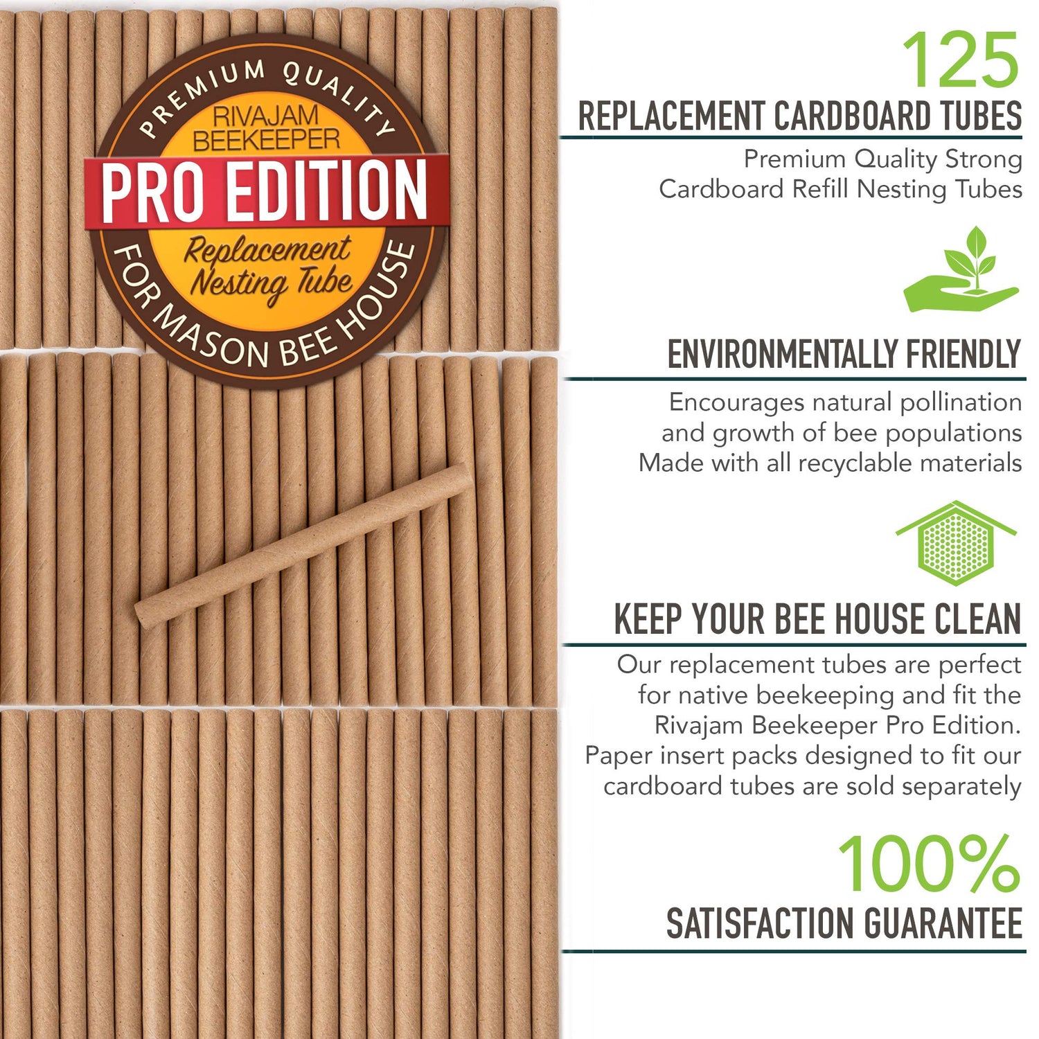 Rivajam 125 Mason Bee House Cardboard Nest Tubes Refill Pack | Solitary Bee Hive & Supplies | Starter Kit & Habitat Garden Gift | Hotels Tubes & Nest Box Inserts Liners