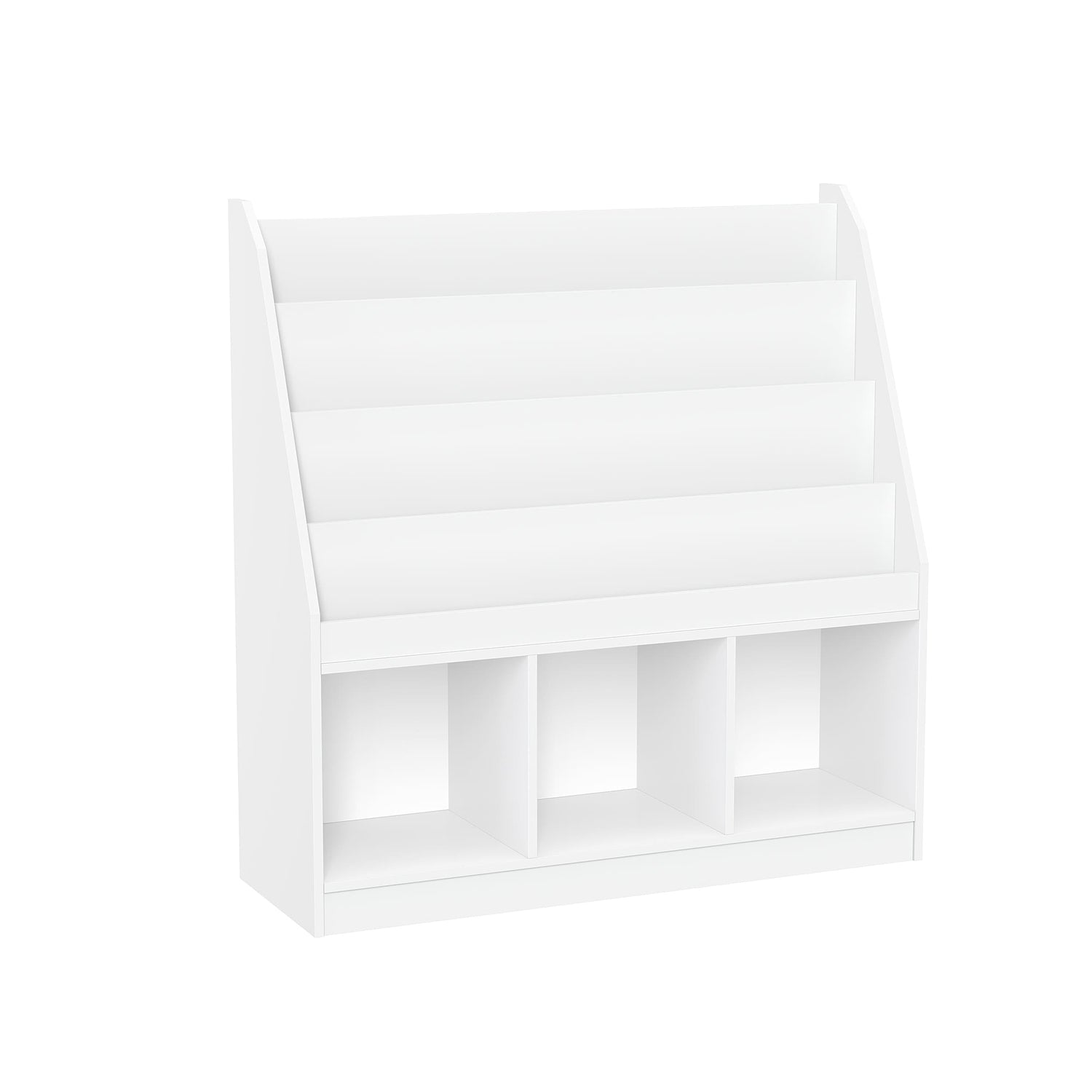 Our kids bookshelves and three square cubbies effortlessly organizes books games puzzles, and toys, keeping everything neatly in its place The shallow bookshelf design allows easy reach for small hands, while the cubbles provide ample space for larger items