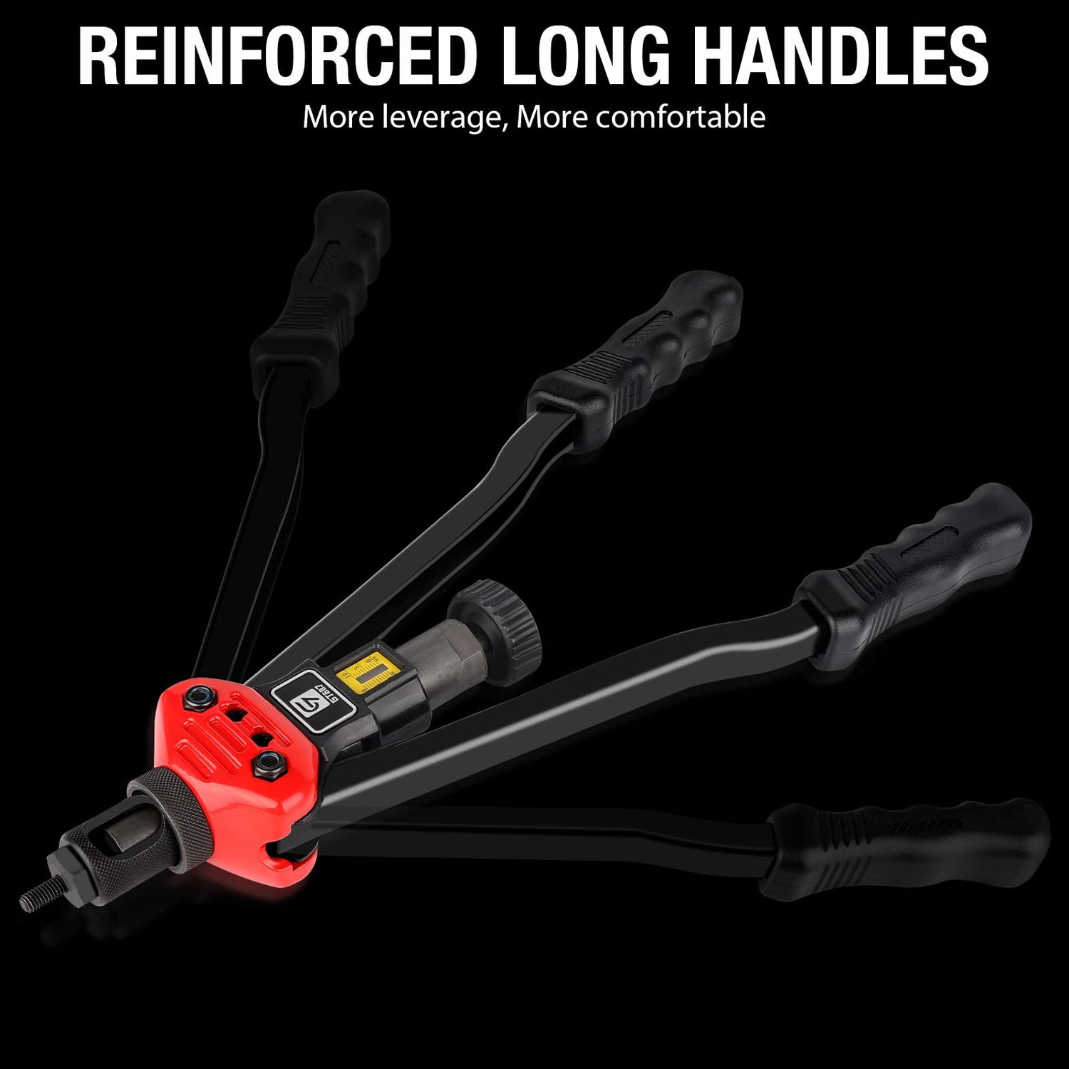 - STRONG AND DURABLE - The 16" rivet nut tool is made from thick carbon steel with heat treated, and black phosphating finishing protects against corrosion. U cross-section of arm is of high reliability to prevent getting bent. With designed structure and tough materiels it is sturdy and durable enough for long life performance.