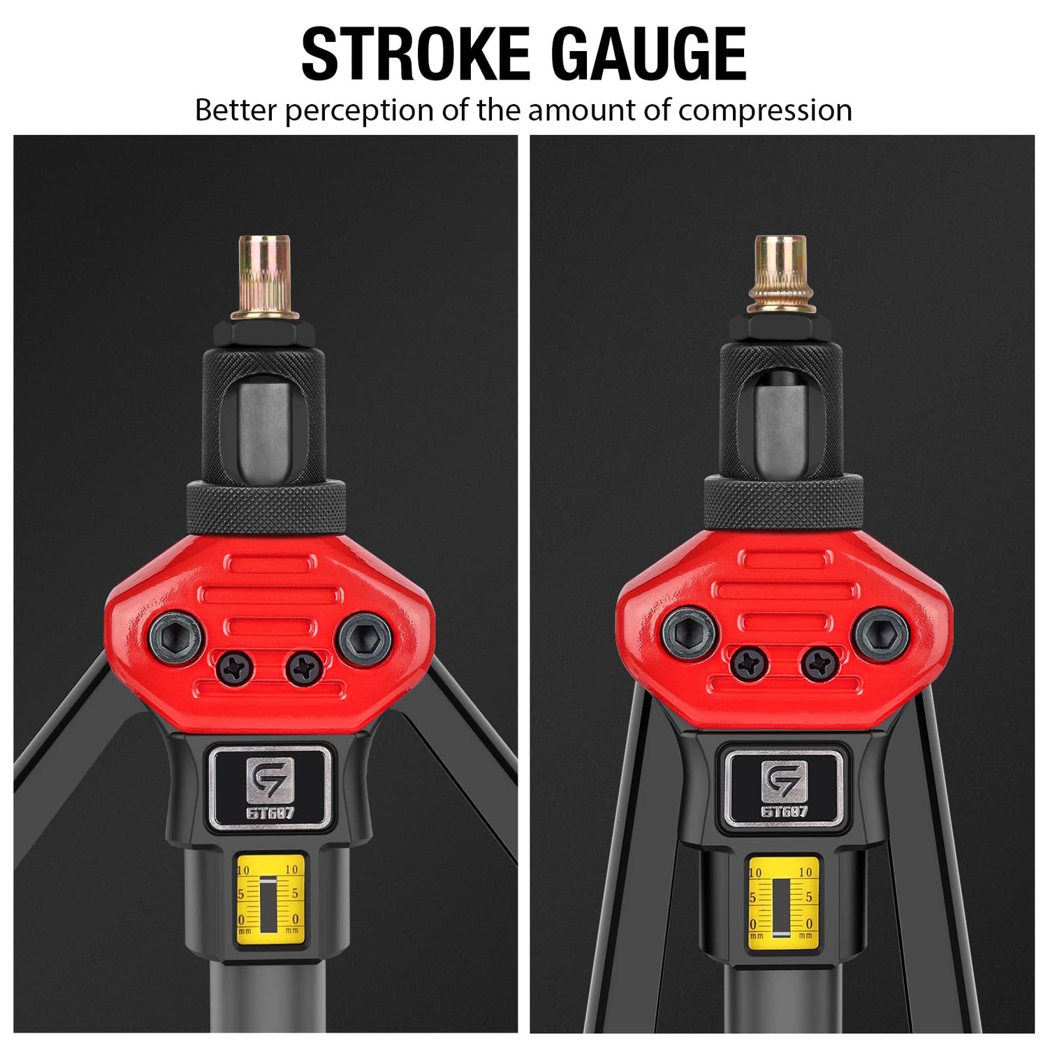 Its design and long arm enable you to save 50% effort than normal rivet tool and experience a more comfortable way of work.