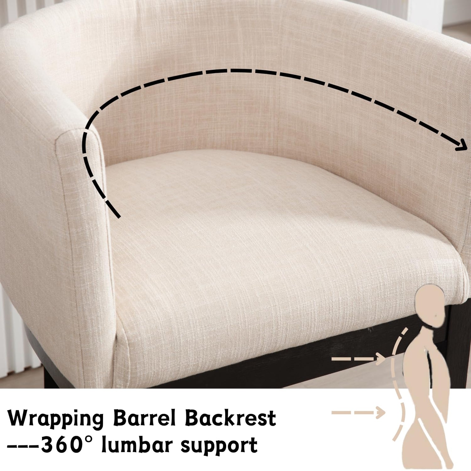 RIVOVA Farmhouse Bar Stools Set of 2-26" Counter Height Linen Upholstered Barstools with Barrel Back & Footrest, Sturdy Black Wood Frame Kitchen Island Stools for Indoor/Outdoor/Club, Beige