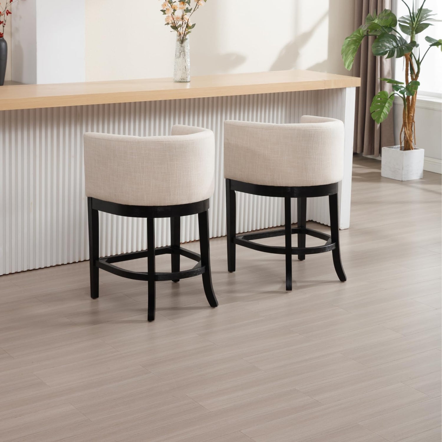 - LINEN + SOLID WOOD: DURABLE & STYLISH: Soft linen upholstery is easy to wipe clean and pairs with a sturdy black wood frame that the 26-inch barstools support up to 300 lbs, resisting daily wear for years