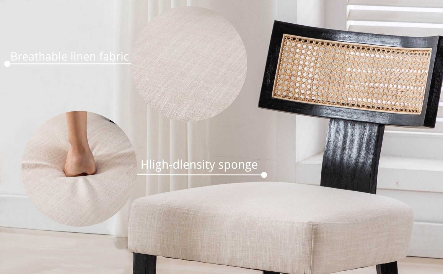 RIVOVA Rattan Back Dining Chairs Mid Century Modern Dining Chairs Set of 4 Rattan Kitchen Chairs Linen Fabric Upholstered Side Chairs, Modern Kitchen Armless Solid Wood Dining Chairs, Beige