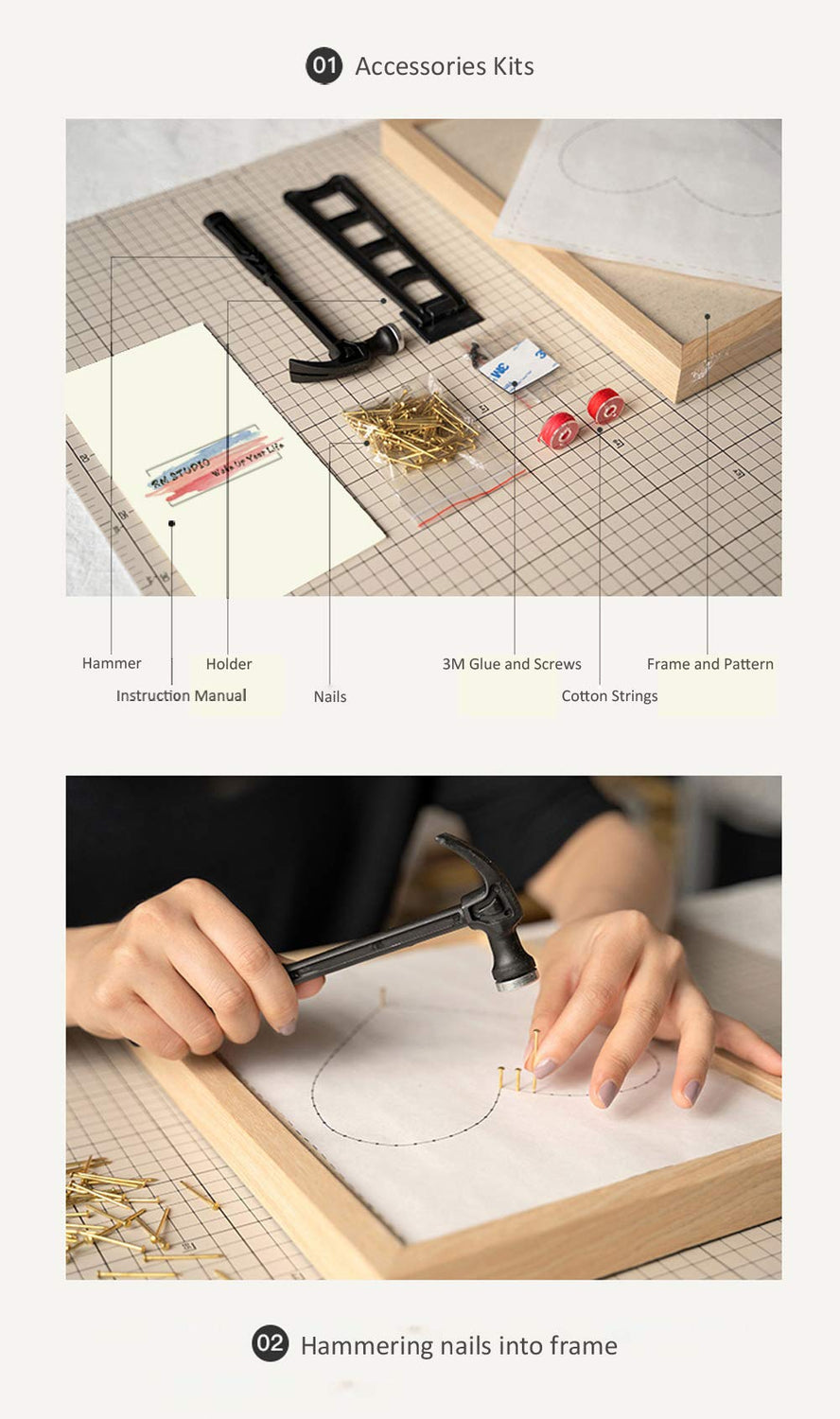 • HANDMADE ART FOR ADULTS and AGES 8 ABOVE: DIY String Art Kit is an exceptional way to stimulate creativity in adults, tweens and young teens who are 8 years old and above. For those searching for cool gifts this kit is perfect. This product is a handwork material package, non-finished products.