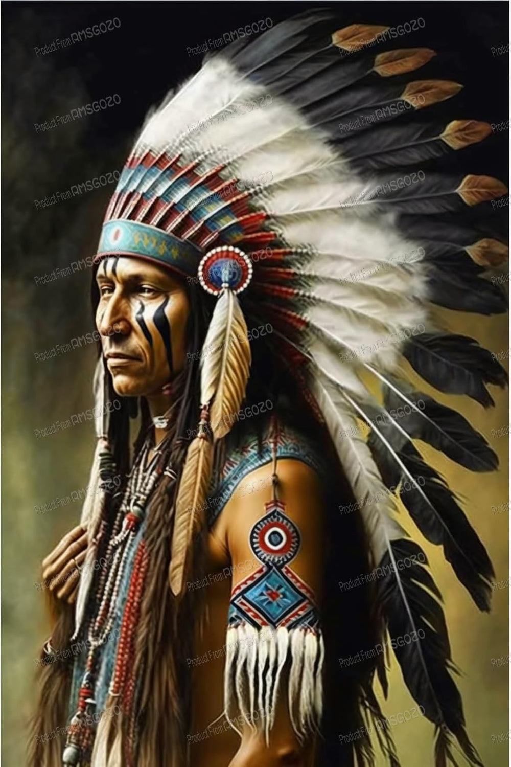 RMSGOZO 5D Native American Diamond Painting Kits - Indians Full Round Diamond Crystal Art Craft Kits for Adults, for Wall Decor & Living Room Decor Gifts (12 X 16 Inch)
